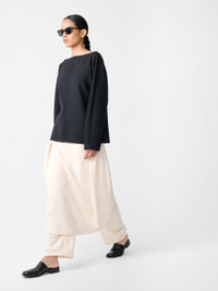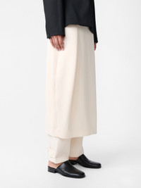 Aru is deftly cut from panels of our double wool sable: a double woven wool noted for its spongy texture and used here to amplify the skirt’s construction. It’s crafted with stitched down deep single pleats, creating curved seams and accentuating the voluminous frame and further enhancing the rounded, sculptural silhouette with which Studio Nicholson is synonymous. DETAILS - Invisible back zip - Deep double pleats - Internal webbing - Wear it with the matching Santini Shirt CARE 96% Virgin Woo 4% Lyocell Dry Clean Only Made in Portugal