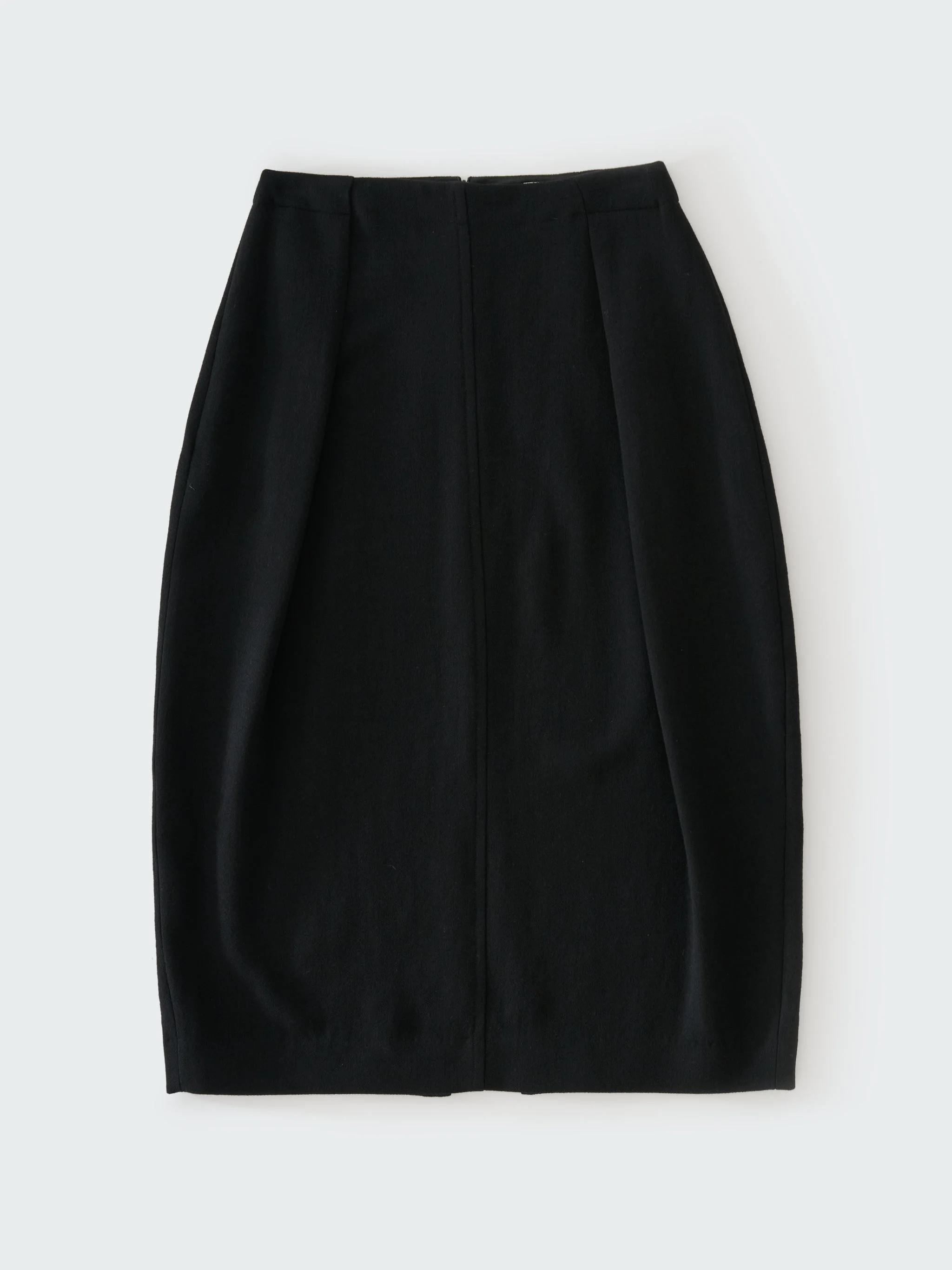 Aru is deftly cut from panels of our double wool sable: a double woven wool noted for its spongy texture and used here to amplify the skirt’s construction. It’s crafted with stitched down deep single pleats, creating curved seams and accentuating the voluminous frame and further enhancing the rounded, sculptural silhouette with which Studio Nicholson is synonymous. DETAILS - Invisible back zip - Deep double pleats - Internal webbing - Wear it with the matching Santini ShirtLuana is 5'10" / 178 cms and wears a size UK8 CARE 96% Virgin Woo 4% Lyocell Dry Clean Only Made in Portugal