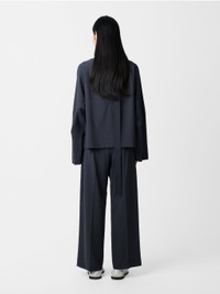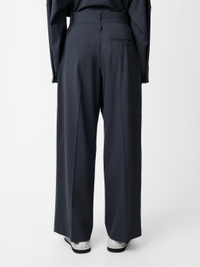 The Baier Pants are made in our breathable Tropical Wool, which thanks to its tightly twisted yarns leaves a non-creased, crisp feeling when worn. The high-rise fit effortlessly elongates the straight leg — enhanced with a subtle pressed crease for added structure — and stops just below the ankle for a clean drape. DETAILS - Concealed hook fastening - Rear buttoned welt pocket - Side slip pockets - Belt loops - Cut from our signature Tropical Wool - Wear it with the matching Santos ShirtChen is 5'10"/ 178 cms and wears a UK8 CARE 58% Virgin Wool 38% Cordura 4% Elastane Dry Clean | Delicate Wash Made in Portugal