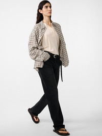 A true wardrobe pillar, Barra is a versatile and highly wearable take on classic five-pocket jeans. Leaning into traditional high-waisted styles, the pair has a straight shape through the leg and is cut from our raw denim – a fabric noted for its slightly heavier hand feel that nods to our longstanding workwear influences. DETAILS - Button fly - Laser front crease - Classic five-pocket style - Tonal topstitching - Leather logo patchRebecca is 5’10” / 177.5 cms and wears a UK8 CARE 71% Cotton 16% Reused Cotton 13% Recycled Polyester Wash at 30°C | Cool Iron