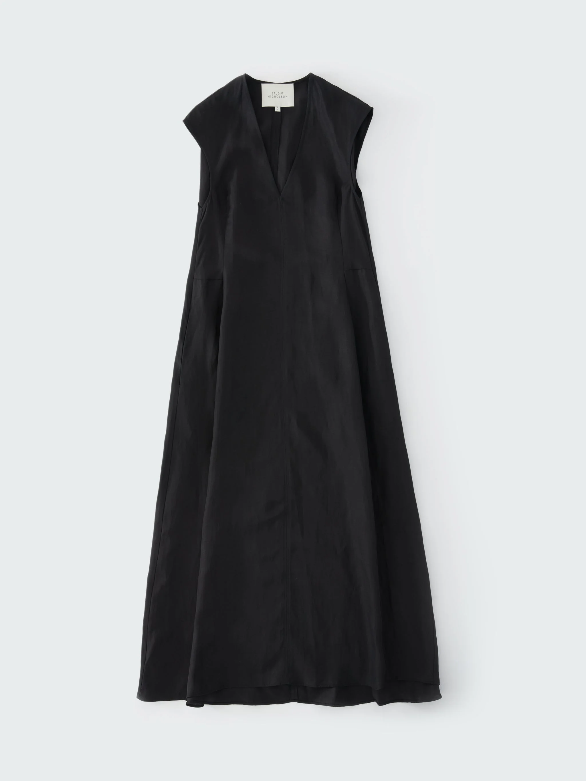 This sleeveless, full-length dress has an oversized fit for relaxed, effortless wear. It is made in a viscose-linen blend with a bouncy hand feel and slub texture with a natural crinkle. Style lines at the front give the dress a gentle structure, while the back is loose and billowy. Other details include a horizontal seam at the waist and side seam pockets. DETAILS - Oversized fit - Side-seam pockets - Zip-free design Louise is 5'11"/ 177.8 cms and wears a UK8 CARE 73% Viscose 27% Linen Dry Clean Only Made in Portugal
