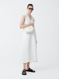 This sleeveless, full-length dress has an oversized fit for relaxed, effortless wear. It is made in a viscose-linen blend with a bouncy hand feel and slub texture with a natural crinkle. Style lines at the front give the dress a gentle structure, while the back is loose and billowy. Other details include a horizontal seam at the waist and side seam pockets. DETAILS - Oversized fit - Side-seam pockets - Zip-free design Louise is 5'11"/ 177.8 cms and wears a UK8 CARE 73% Viscose 27% Linen Dry Clean Only Made in Portugal