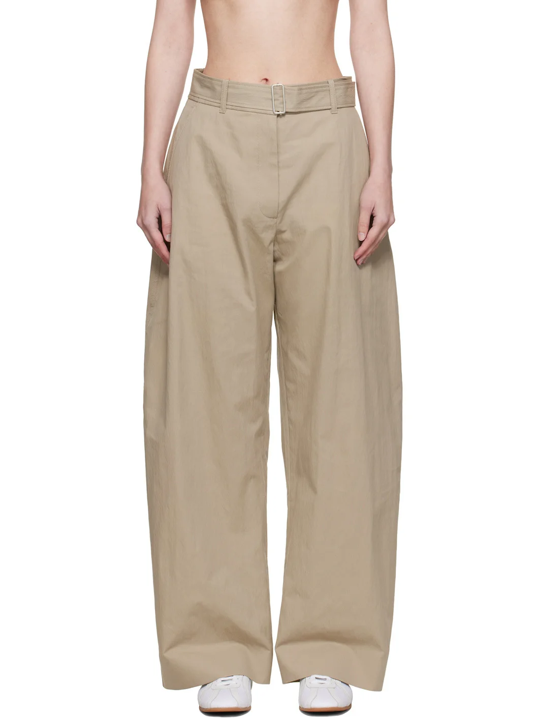 Crinkled cotton- and nylon-blend twill trousers. · Belt loops and detachable cinch belt at waistband · Four-pocket styling · Zip fly Supplier color: Dark stone 57% cotton, 43% polyamide. Made in Portugal 252608F087007