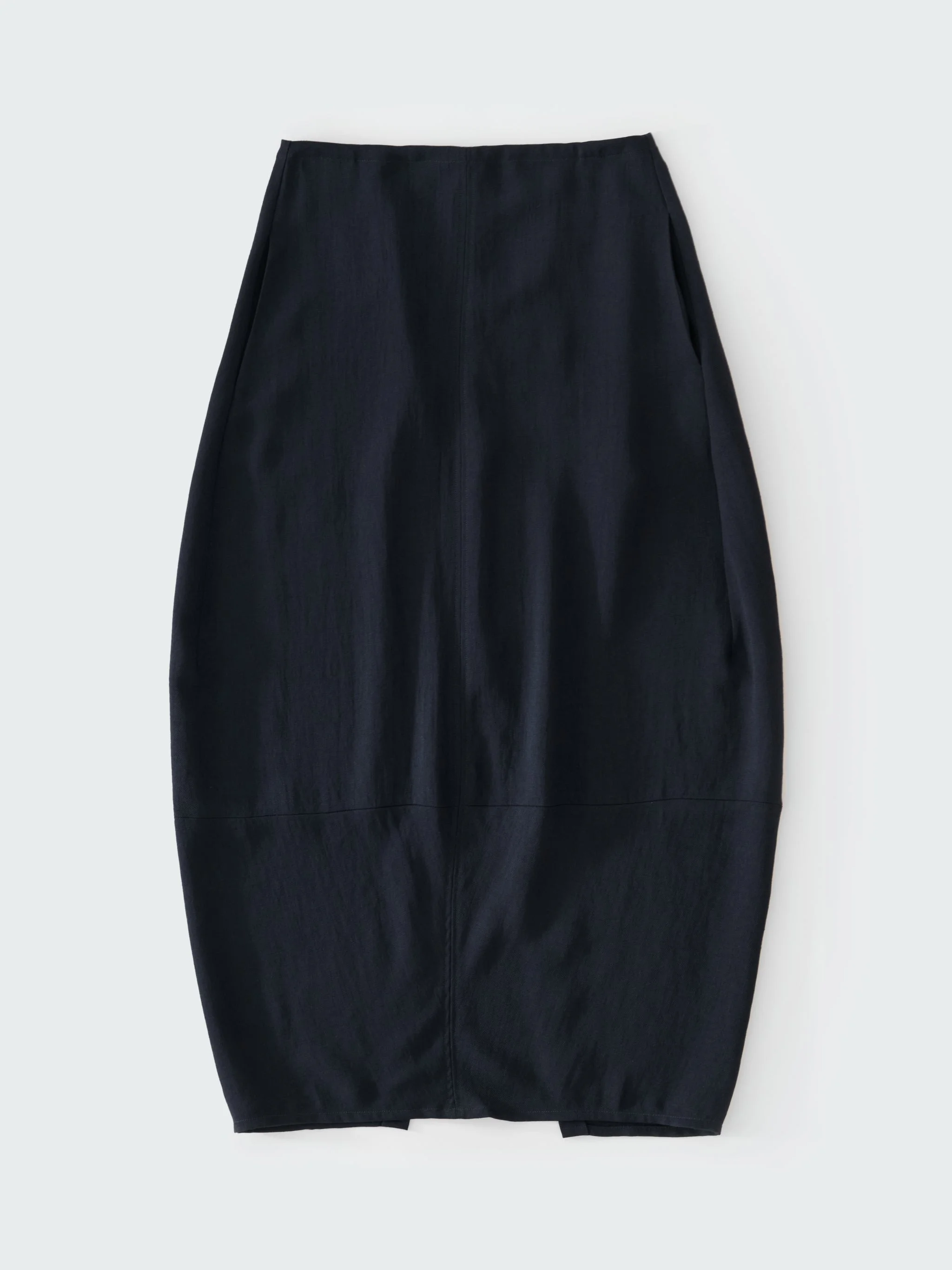 Studio Nicholson’s laser-focus on fabrics is underscored by the Beni skirt. It’s cut from our linen-like twill: a Japanese-milled, wrinkle-resistant triacetate noted for its effortless drape, rich colour saturation and luxurious hand feel. It’s constructed with darts and a rear vent that further accentuate the fabric choice. DETAILS - Rear darts - Rear hook and zip fastening - Rear vent - Wear it with the matching Lory TopNataly is 5'10" / 177 cms and wears a size UK8 CARE 100% Triacetate Delicate Wash at 30°C | Dry Clean Made in Portugal