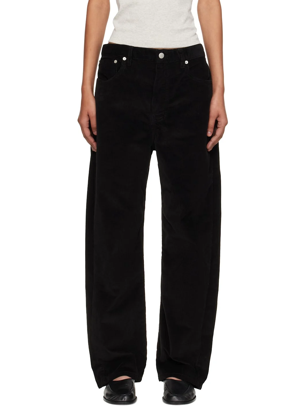 Stretch cotton corduroy jeans. · Wide-leg · Belt loops · Five-pocket styling · Zip fly · Offset outseams · Leather logo patch at back waistband Supplier color: Black 97% cotton, 3% elastane. Made in Turkey 252608F069015
