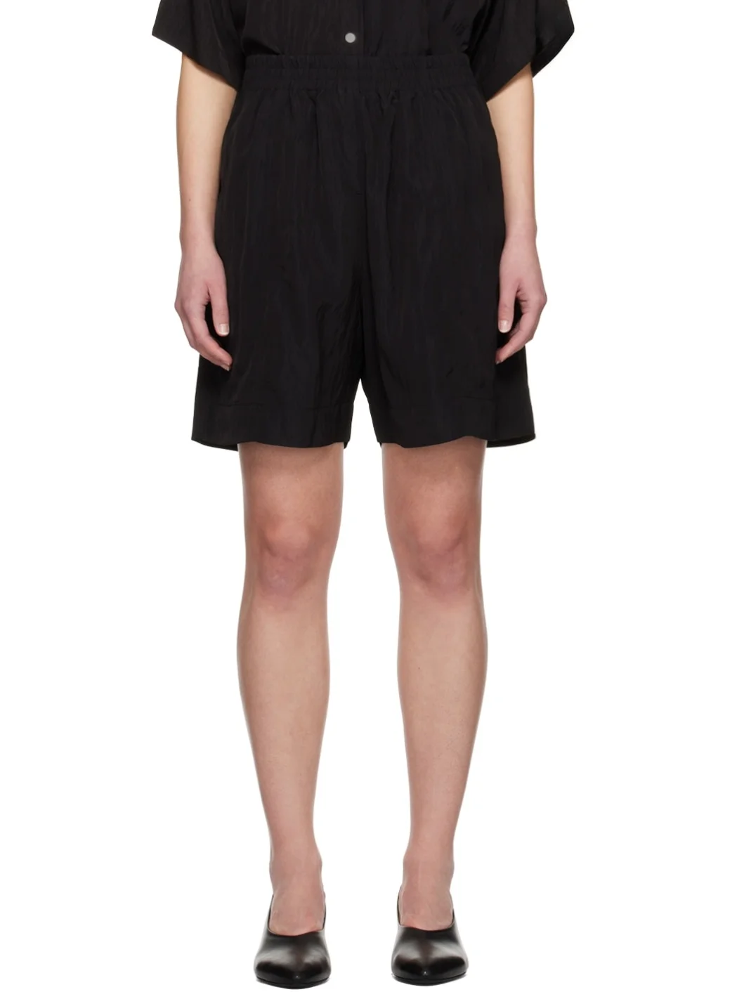 Crinkled viscose- and nylon-blend taffeta shorts. · Elasticized waistband · Two-pocket styling Supplier color: Black 89% viscose, 11% polyamide. Made in Portugal 241608F088004