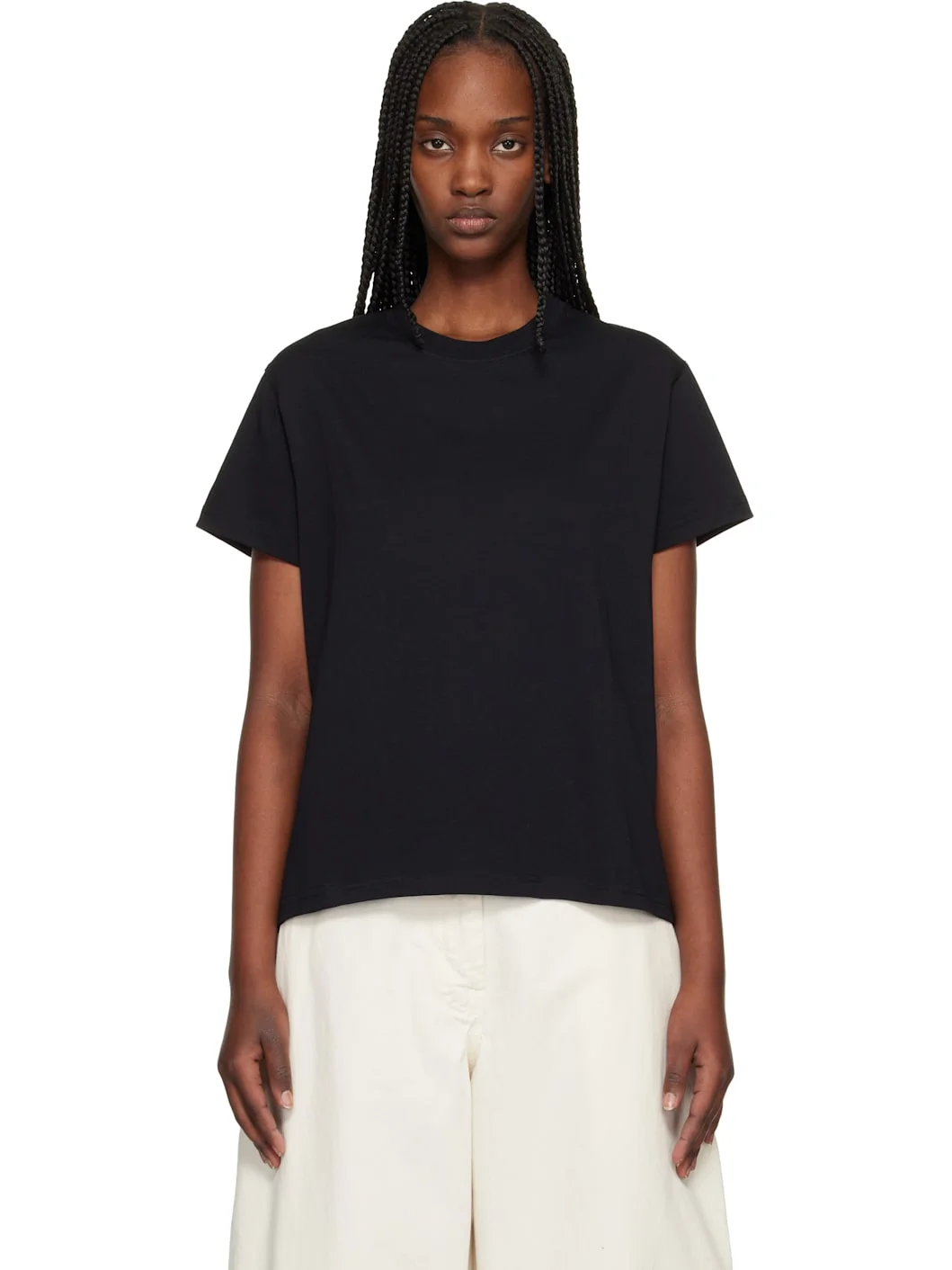 Cotton jersey T-shirt. · Rib-knit crewneck · Logo printed at back collar Supplier color: Black 100% cotton. Made in Portugal 261608F110017