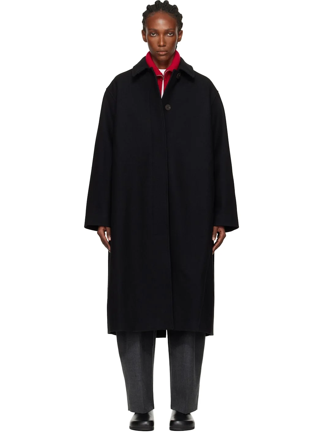 Nylon- and wool-blend melton coat. · Spread collar · Concealed button closure · Seam pockets at waist · Central vent at back hem · Welt pocket at interior · Full cotton-blend twill lining Supplier color: Black Body: 80% polyamide, 20% wool. Lining: 51% viscose, 49% cotton. Made in Portugal 252608F059003