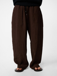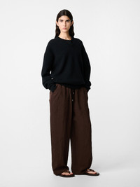 The satisfyingly slouchy Capel pants evoke the relaxed mood that permeates our Autumn/Winter25 collection. They’re cut from our crushed viscose fabric: an Italian-milled fabric with a creased, irregular finish that drapes effortlessly. The pants are constructed with an elasticated waist, central seams and generous Italian pockets. DETAILS - Elasticated waistband - Back patch pocket - Drawcord waist - Italian pocketsRebecca is 5’10” / 177.5 cms and wears a size UK8 CARE 100% Viscose Do NOT Wash | Dry Clean Made in Portugal