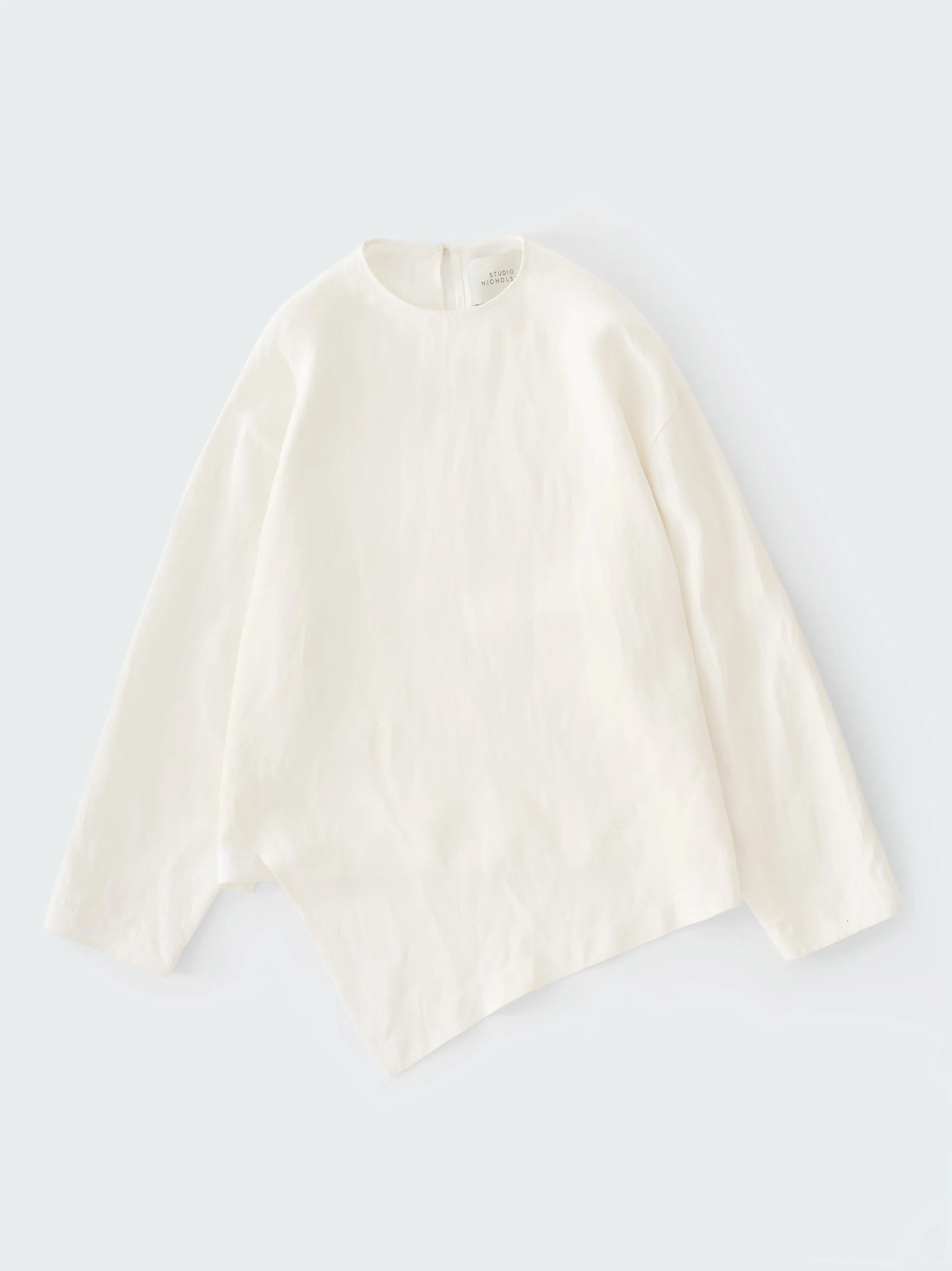 The Bute top is cut with an asymmetric front panel that falls softly over the body, embodying a relaxed feel that’s complemented by the detachable scarf. This iteration is cut from a fluid woven fabric that has a pleasing drape, then finished with neat straight cuffs. DETAILS - Detachable scarf - Buttoned keyhole at nape - Asymmetric front hem - Side slitXinyue is 5'11" / 180cms and wears a size UK8 CARE 73% Viscose 27% Linen Do NOT Wash | Dry Clean Only Made in Portugal