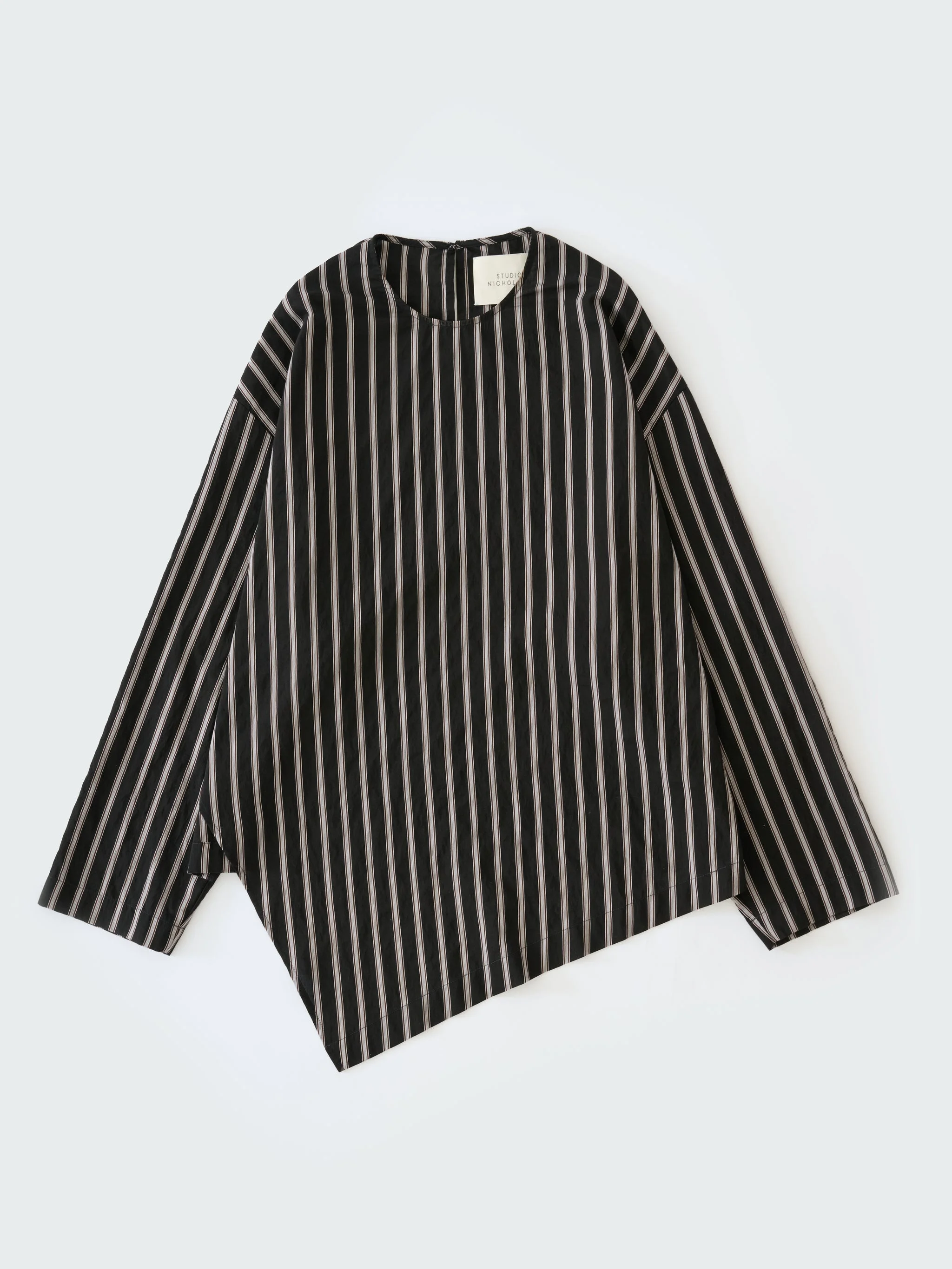The Bute shirt is cut with an asymmetric front panel that falls softly over the body, embodying a relaxed feel that’s complemented by the detachable scarf. This striped style is cut from crisp poplin and is finished with neat straight cuffs. DETAILS - Detachable scarf - Buttoned keyhole at nape - Asymmetric front hem - Side slitMiko is 5'9" / 177cms and wears a size UK8 CARE 81% Lyocell 19% Polyamide Hand Wash | Delicate Dry Clean Made in Portugal