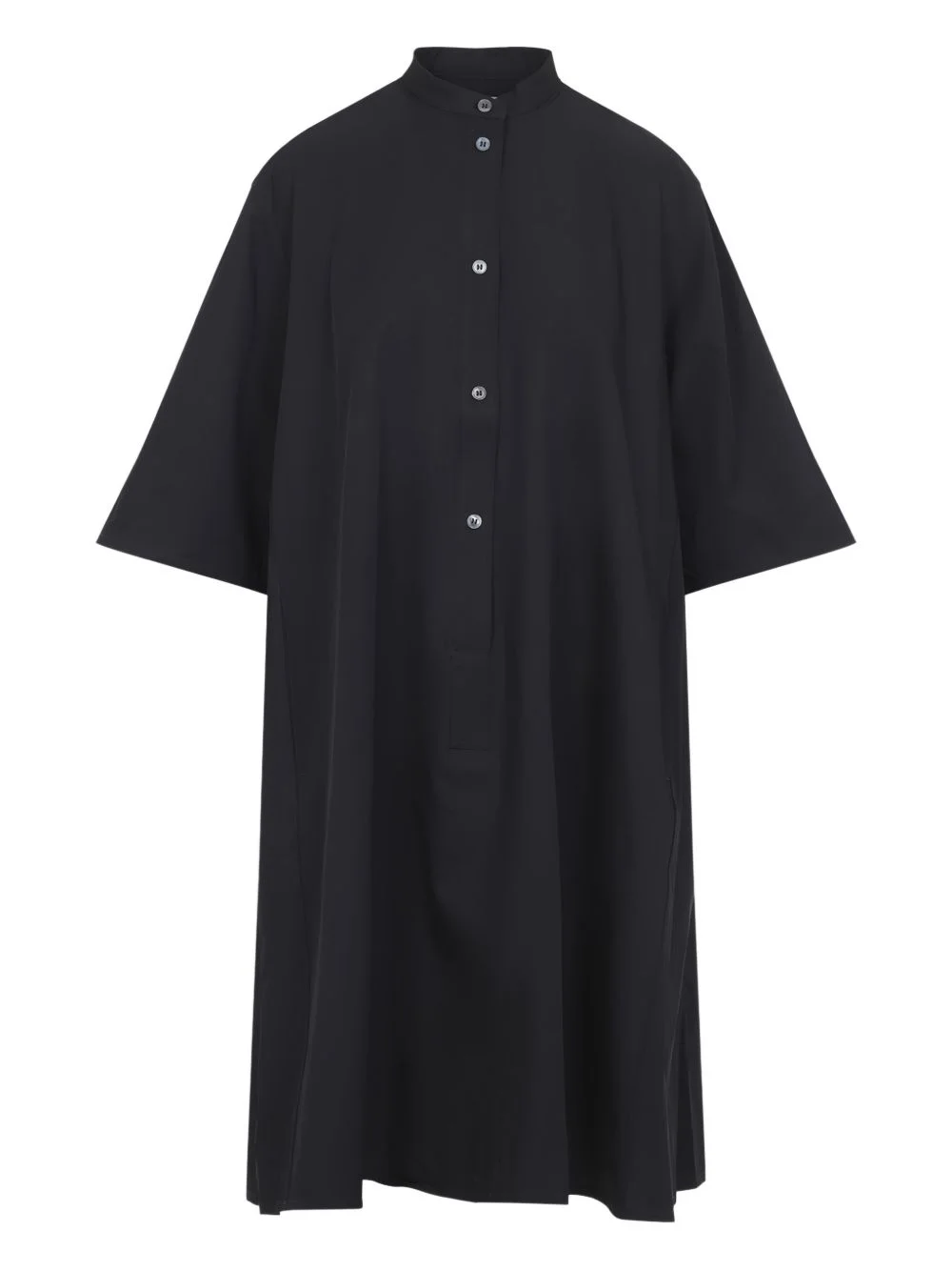 buttoned shirt midi dress Highlights - Black - Band collar - Button front fastening - Short sleeves - Below the knee - Pleat at the rear Imported Composition Fabric 100% Washing instructions Read Manufacturer Guidelines