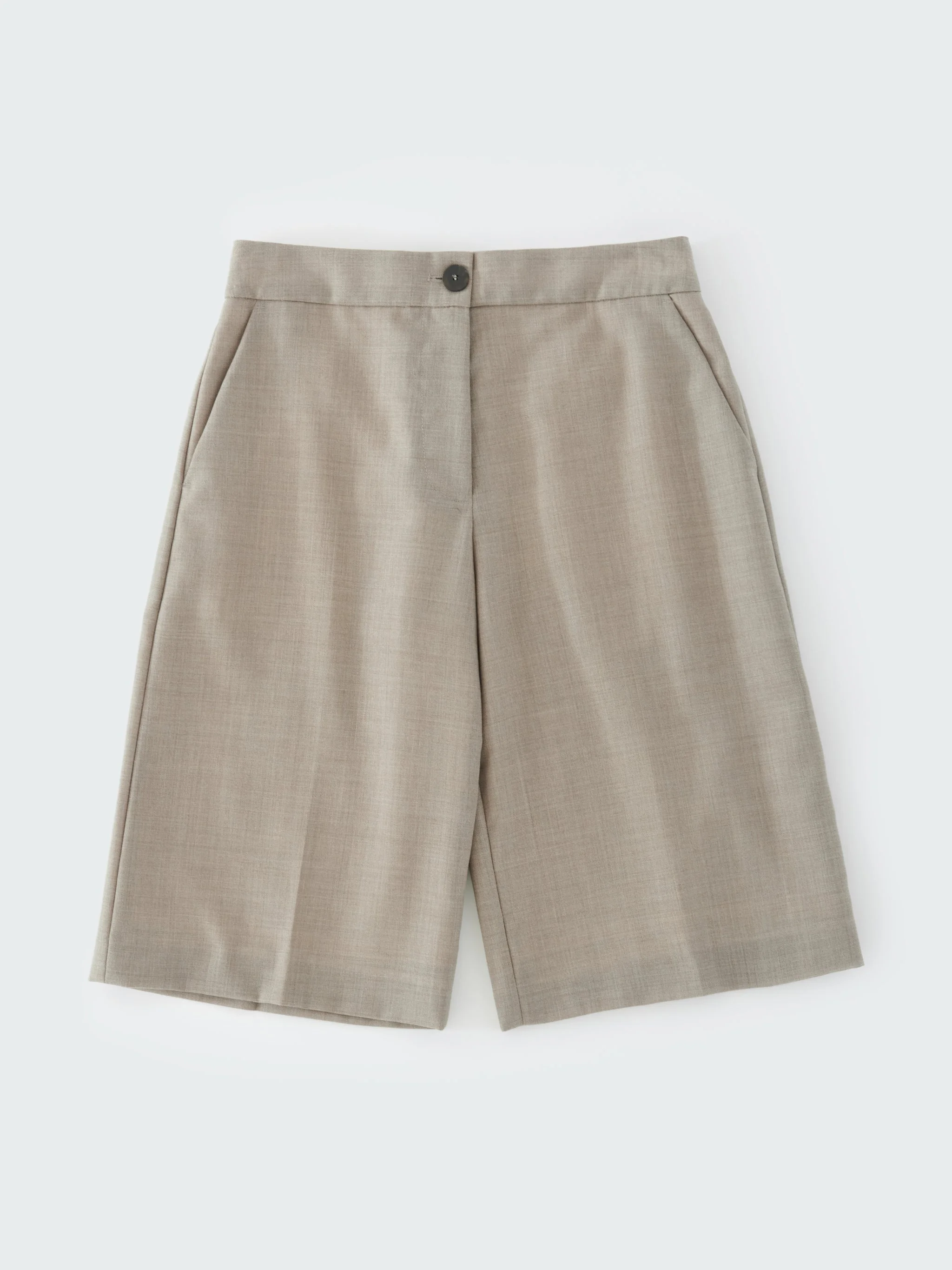 These knee-length tailored shorts are made in a lightweight and breathable tropical wool. Fully lined, The Cabra Shorts feature classic tailoring details, including trouser waist-banding, a hard-pressed crease at the front, and Italian pockets at the sides with welt pockets at the back. They are mid to low-rise and have a straight fit with a slight flare at the knee. DETAILS - Woven at British heritage mill Alfred Brown - Fully lined - Italian pockets at the sides - Welt pockets at the back - Wear it with the matching Wilton Shirt Louise is 5'11"/ 177.8 cms and wears a UK8 CARE Main Fabric: 100% Wool Lining: 100% Viscose Dry Clean Only Made in Portugal