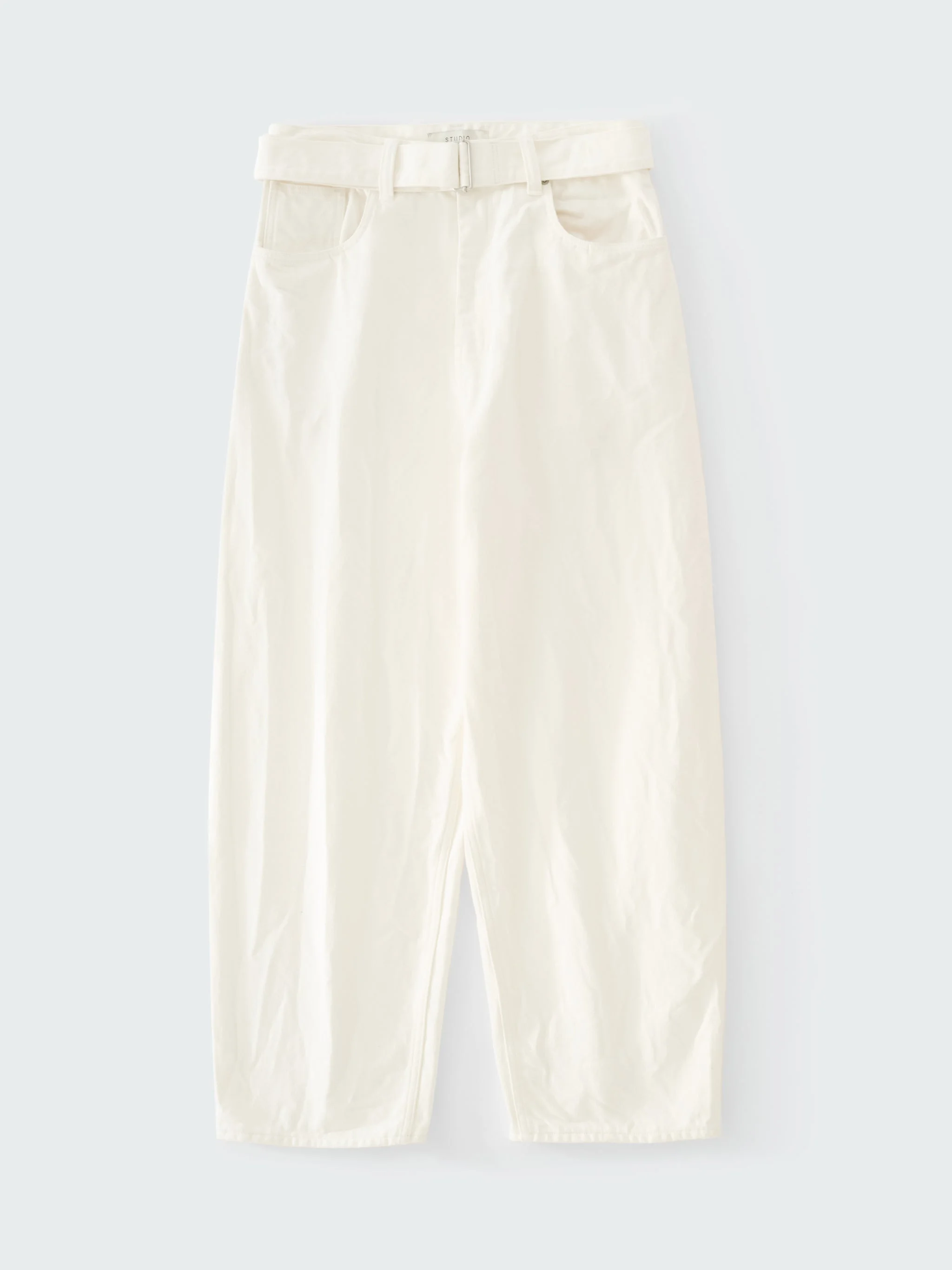 A subtle evolution of our staple Doring silhouette, the Cahun pants are a true wardrobe staple. They’re cut from our 13oz Japanese denim that’s washed to give it a softer handle and noted for its crinkled finish. The pair is constructed with a belted waist that accentuates the slight curve in the leg. DETAILS - Mid rise - Buckle fastener on waistband - Classic five pocket silhouette - Rear patch pocketsNataly is 5'10" / 177 cms and wears a size UK8 CARE 100% Cotton Delicate Wash at 30°C | Delicate Dry Clean Made in Japan