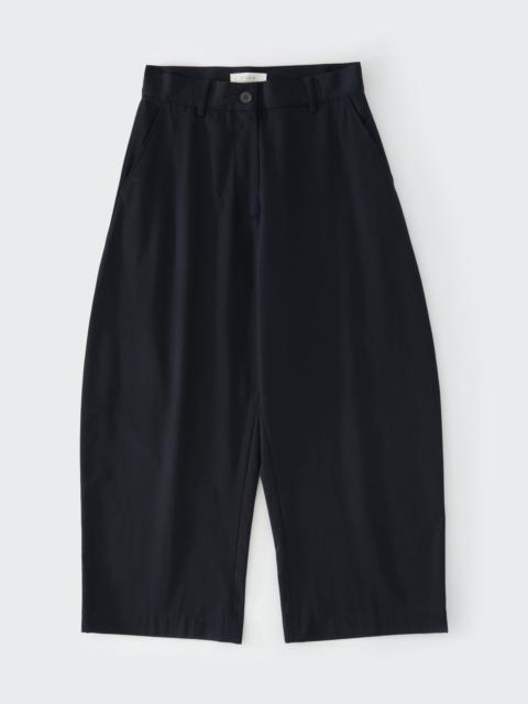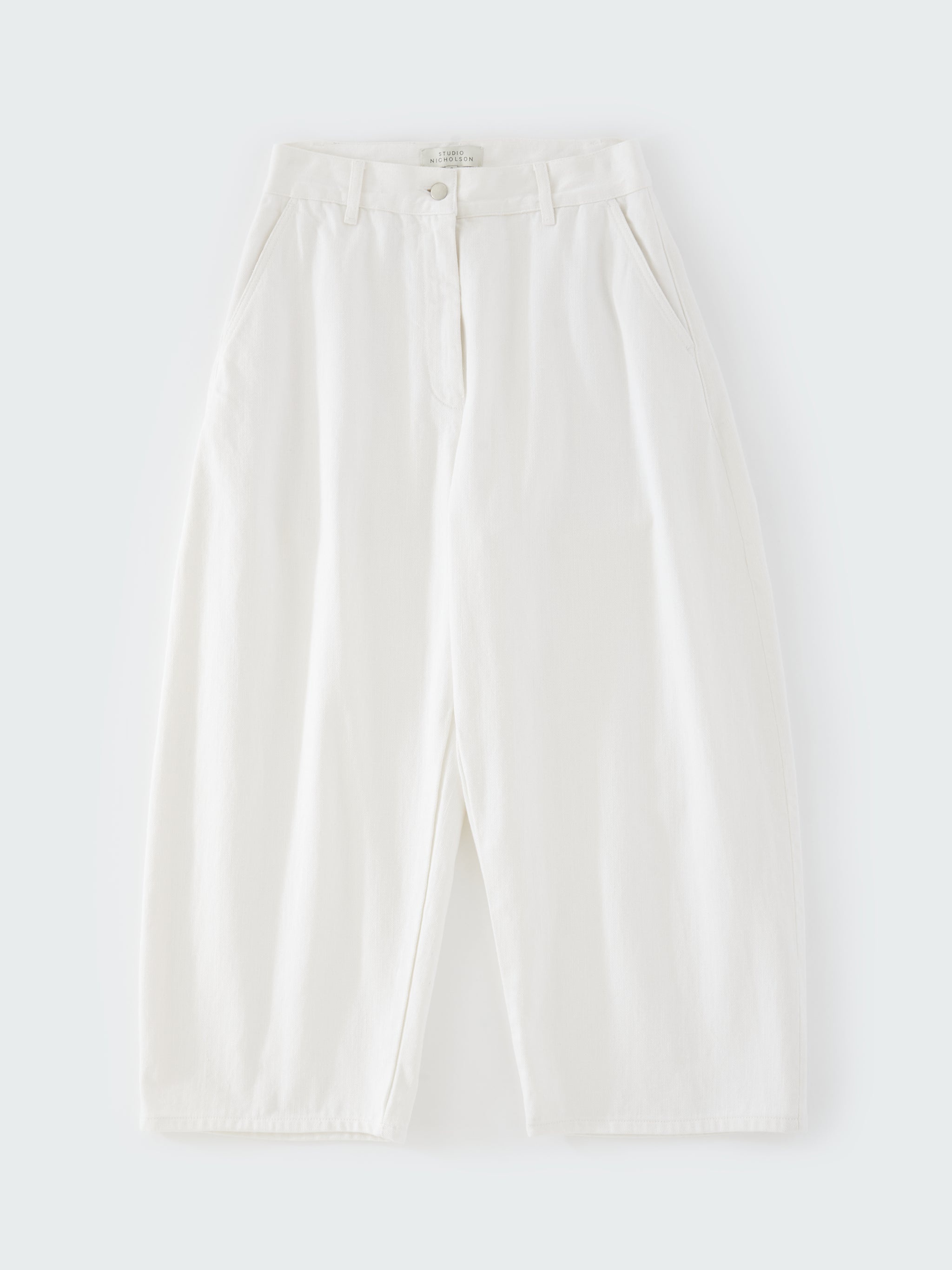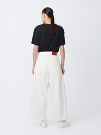 A true SN staple from season to season, our Chalco pants are cut wide and cropped, with a curved leg and dropped crotch. Here they are constructed from a recycled denim that’s been garment dyed for a soft, easy-wearing finish. - Exaggerated curved leg - Button waist - Generous fit - Garment dyed recycled denimLaura is 5’10” / 178cm, she wears a size 0 DETAILS & CARE 71% Cotton, 16% Reused Cotton, 13% Recycled Polyester Delicate Wash at 30°C