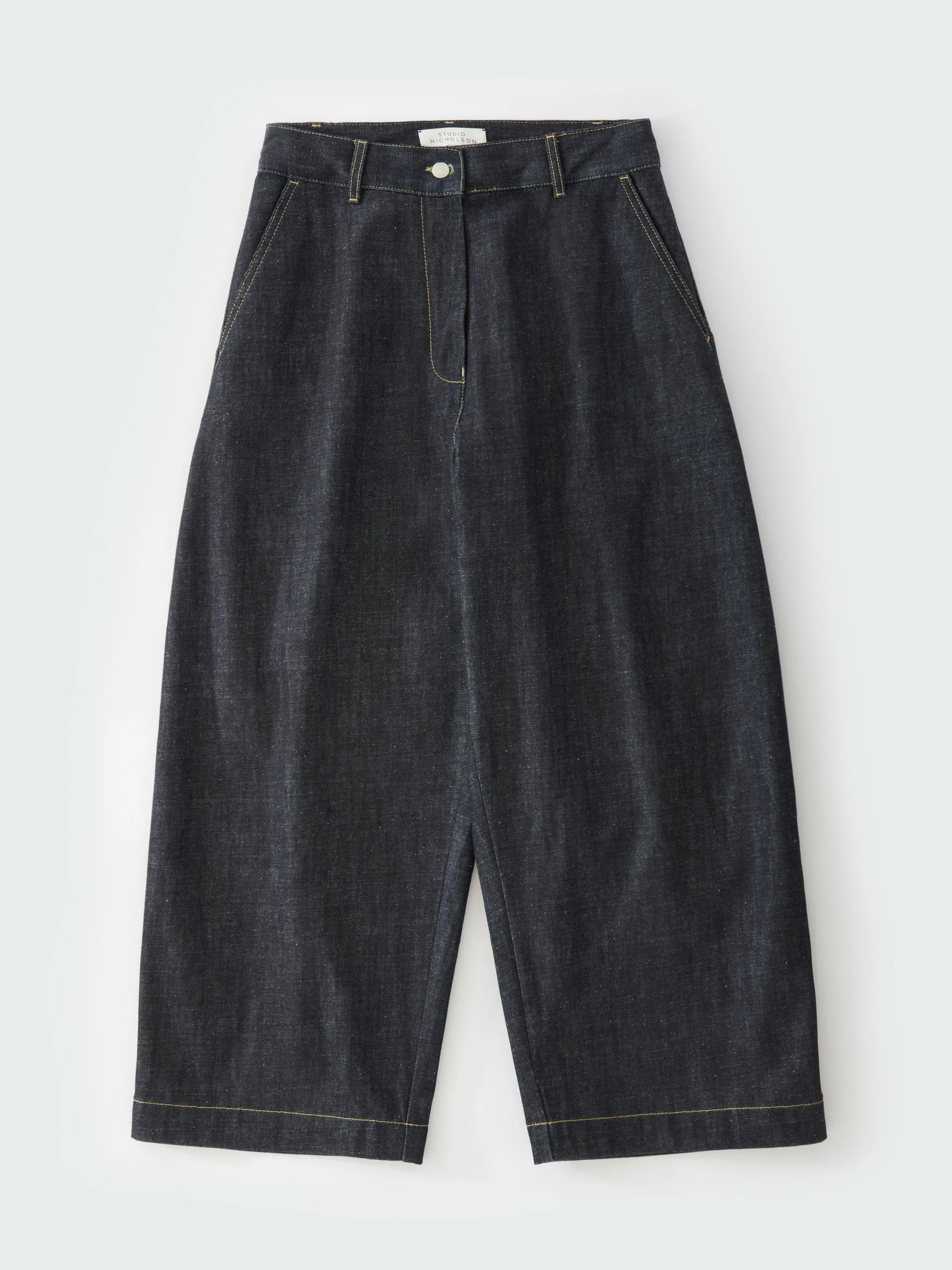 A true SN staple from season to season, our Chalco pants are cut wide and cropped, with a curved leg and dropped crotch. Here they are constructed from a recycled denim. - Exaggerated curved leg - Button waist - Generous fit - Recycled denim Isilda is 5'10" / 180cm and wears a size 0 DETAILS & CARE 71% Cotton, 16% Reused Cotton, 13% Recycled Polyester Patch - 100% Leather Wash at 30°C