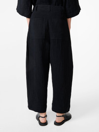 A true SN staple from season to season, our Chalco pants are cut wide and cropped, with a curved leg and a dropped crotch. Here they are constructed from an Italian-shrunk double linen that’s woven with elements of cotton, then tumbled to create a textured, washed-down look. DETAILS - Exaggerated curved leg - Button and zip fastening - Side slant pockets - Back patch pocketsXinyue is 5'11" / 180cms and wears a size UK8 CARE 99% Linen 1% Cotton Hand Wash | Dry Clean Made in Portugal