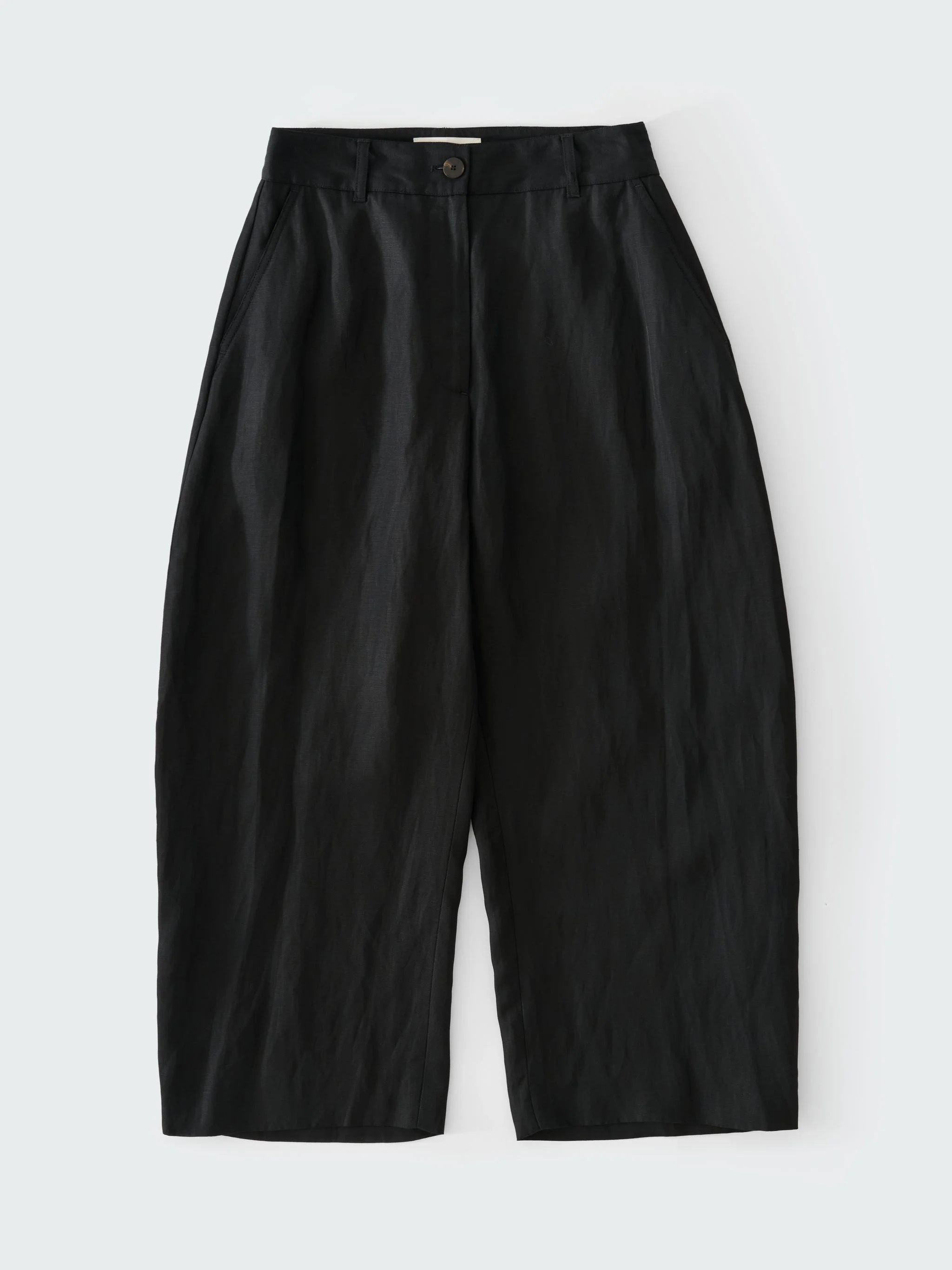 A true SN staple from season to season, our Chalco pants are cut wide and cropped, with a curved leg and dropped crotch. Here they are constructed from a fluid viscose linen twill, a fabric chosen for it’s clean, easy-wearing finish. DETAILS - Exaggerated curved leg - Button waist - Generous fit - Fluid viscose linenXinyue is 5'11" / 180cms and wears a size UK8 CARE 73% Viscose 27% Linen Do NOT Wash | Dry Clean Only Made in Portugal