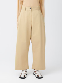 A true SN staple from season to season, our Chalco pants are cut wide and cropped, with a curved leg and dropped crotch. Here they are constructed from a sharp cotton twill. - Exaggerated curved leg - Button waist - Generous fit - Cotton twill Isilda is 5'10" / 180cm and wears a size 0 DETAILS & CARE 100% Cotton Wash at 30°C