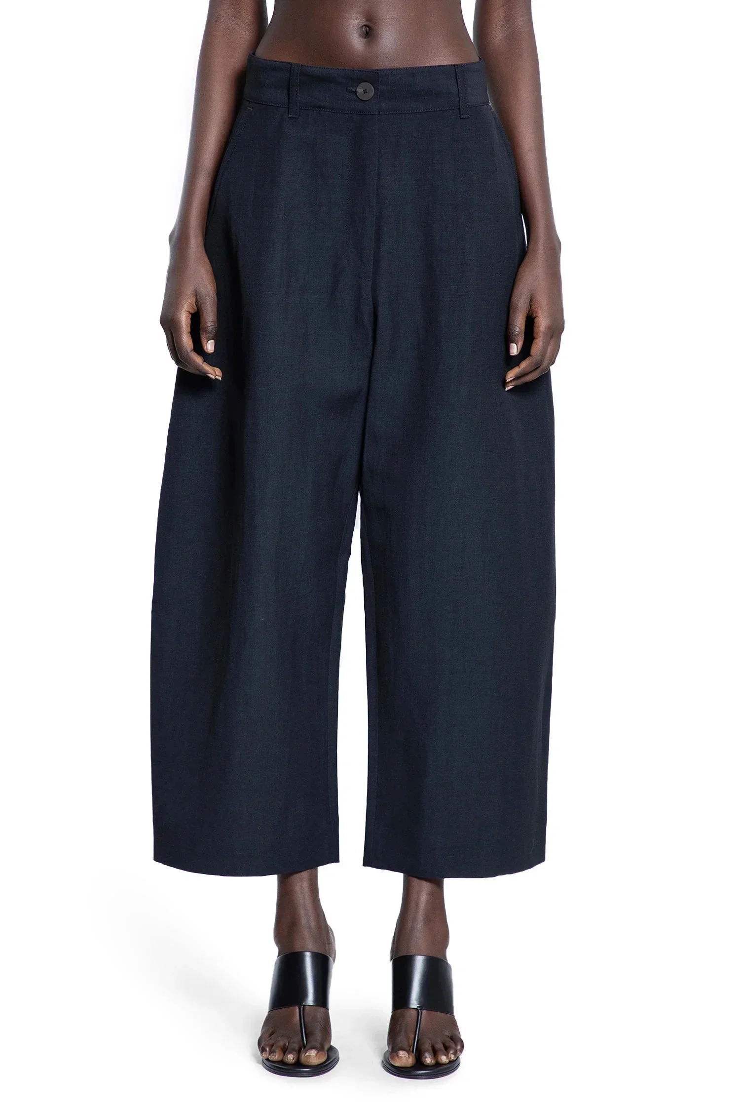 DESCRIPTION - Darkest navy - Cotton twill - Belt holes - Button closure - Drop crotch - Side pockets - Back pockets - Cropped hems - Curved wide leg - Relaxed fit DETAILS - Made in: Portugal - Composition: 100% Cotton - Model code: CHALCOSNW1173 DARKESTNAVY - Item ID: 9446423658838