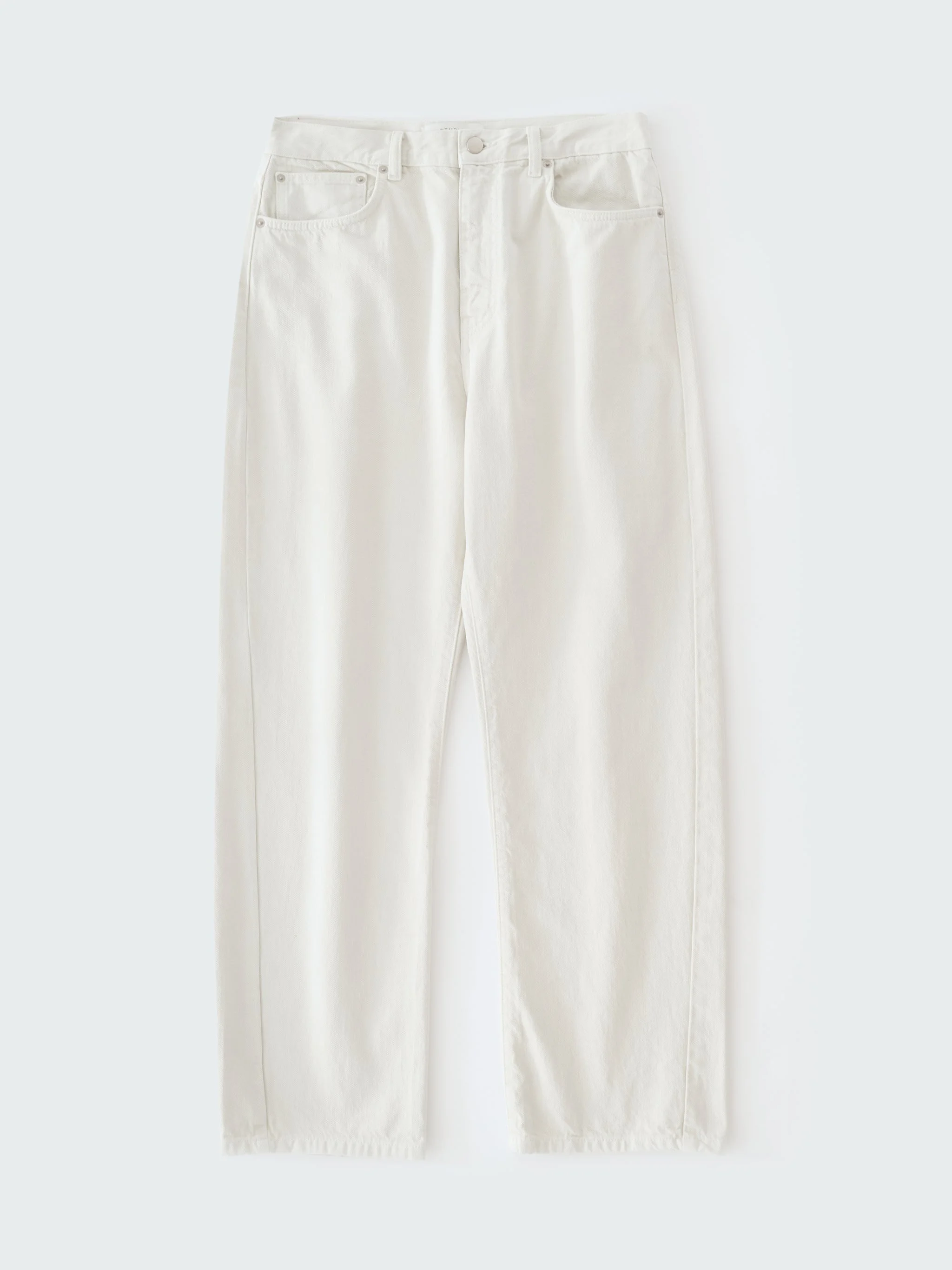 The Denjo jeans have a wide leg that’s softly shaped with a forward seam, creating an ergonomic fit that feels relaxed and wearable. This pair is cut from cotton denim that’s garment-dyed in neutral ice shade. DETAILS - Five-pocket construction - Metal rivets - Button and zip fly - Wide leg with front seam - Garment dyed denimMiko is 5'9" / 177cms and wears a size UK8 CARE 100% Cotton Wash at 30°C | Cool Iron