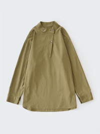Dimas is cut from a compact cotton canvas that has an irregular and slightly grainy finish that leans into our longstanding workwear influences. Constructed with a grandad collar and a two-button half placket with an asymmetric edge, it has a slightly dropped shoulder and a curved hem that brings a relaxed feel to traditional shirting. DETAILS - Grandad collar - Half placket - Buttoned cuffs - Curved hem - Wear it with the matching Caro PantNataly is 5'10" / 177 cms and wears a size UK8 CARE 100% Cotton Hand Wash | Dry Clean Made in Portugal
