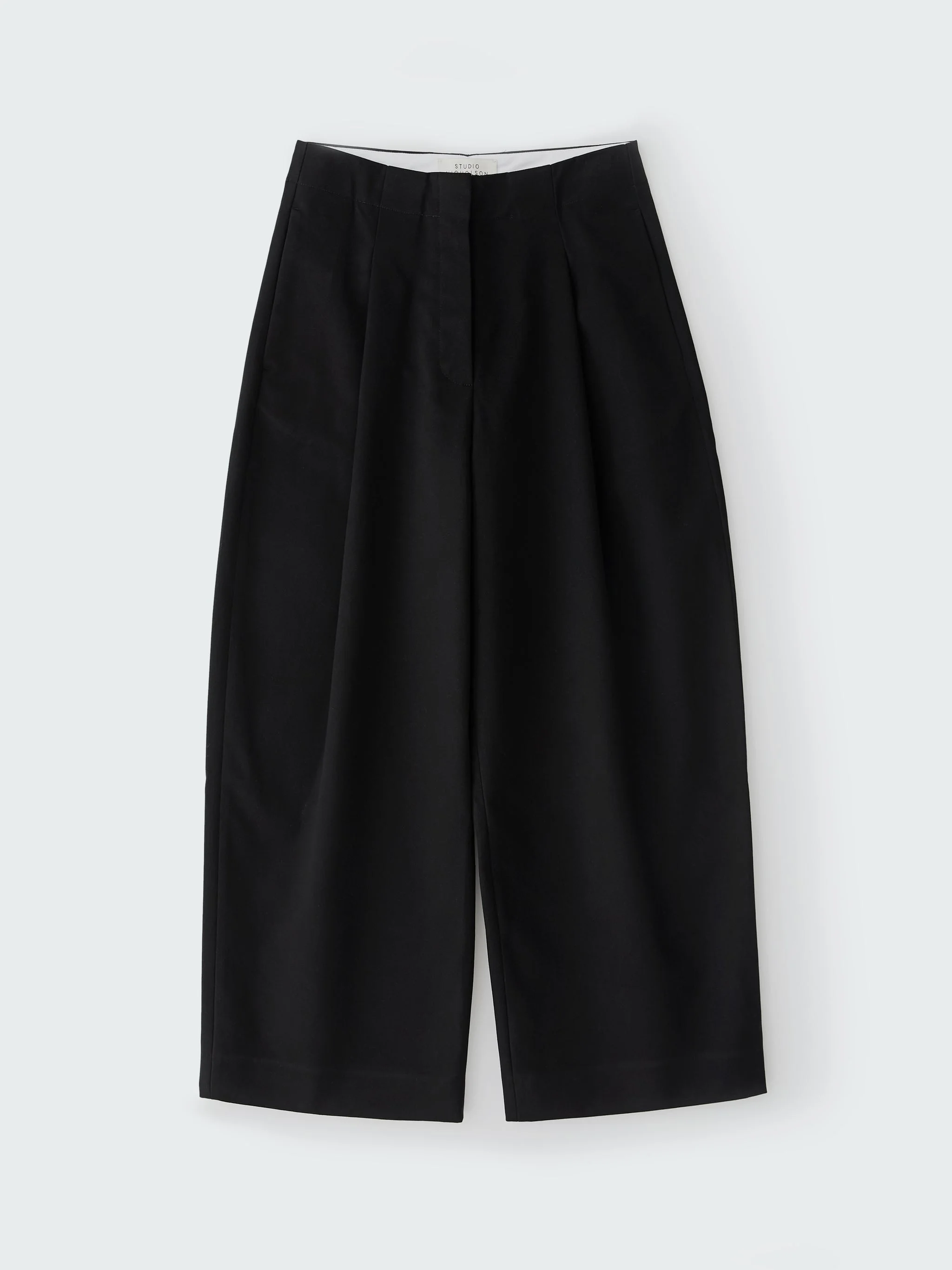 Our ever-popular Dordoni pants feature a high waist, drop crotch, and gently curved leg shape. Deep single pleats reference traditional tailoring. For this seasonal style we've used our signature Italian peached cotton twill for a soft hand feel. DETAILS - Deep front pleats - Concealed zip fly with hook and bar closure - Two side seam pockets - Two rear welt pockets - Voluminous cut with curved leg - Cropped length Rebecca is 5’10” / 177.5 cms and wears a size UK8 CARE 100% Cotton Wash at 30°C | Dry Clean Made in Portugal