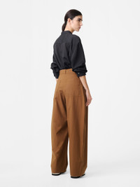 An evolution on Studio Nicholson’s staple Chalco pants, the Doring silhouette embodies a slightly slimmer profile with a matching slide buckle-fastening belt. This gently curved pair is cut from our noisy cotton – a twill that’s enzyme-treated for a softer finish – and fitted with back pockets for a utilitarian feel. DETAILS - Slide buckle-fastening belt - Hook and zip fastening - Side slant pockets - Back patch pockets - Wear it with the matching Annick ShirtRebecca is 5’10” / 177.5 cms and wears a size UK8 CARE 100% Cotton Delicate Wash at 30°C | Cool Iron Made in Portugal