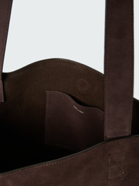 An update of the Doublet bag from our debut collection, this Type 2 iteration flips the silhouette to a more traditional ‘North-South’ tote configuration. It’s cleverly constructed in Italy with minimal seams, creating a softly structured curved base. The fixed strap is secured on opposite corners, permitting the bag to slouch when worn, and is just long enough for it be worn closely across the body. DETAILS - Stamped silver foil logo - Concealed magnetic closing - Hand-painted tonal edges - Internal suede pocket - 100% Italian suede - Made in Italy - Microfiber lining - W: 34cm x H: 39.5cm x D: 15cm - Handle length: 85cm