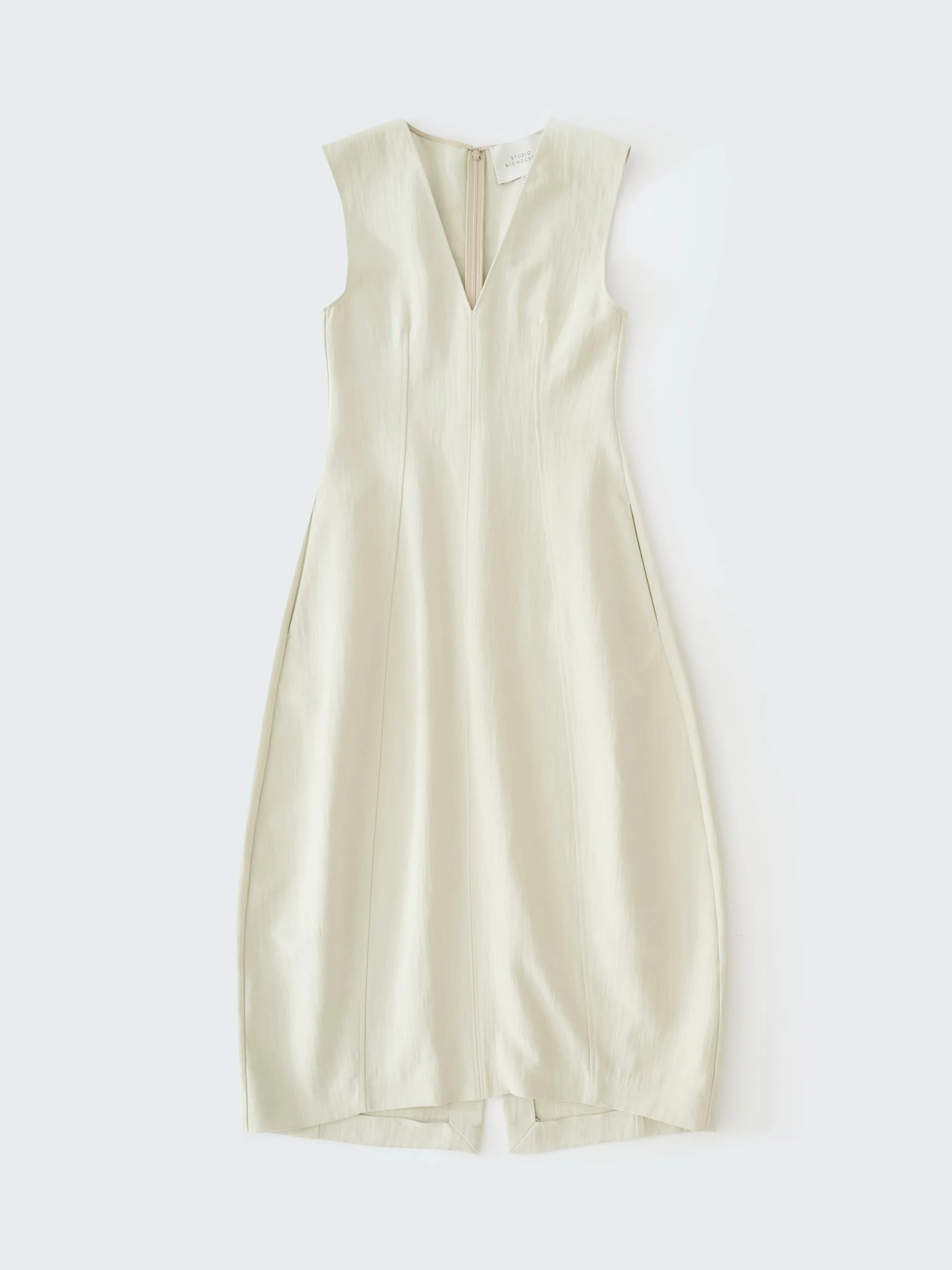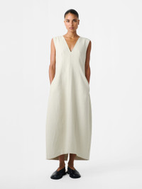 The Enna dress is cut from a textured double cotton twill that’s imbued with a soft structure that’s further moulded with shaping seams through the bodice. This V-neck style has handy side slit pockets and is finished with a back vent to ensure ease of movement through the midi-length skirt. DETAILS - V neckline - Side slit pockets - Concealed back zip - Back vent - Wear it with the matching Silas JacketMiko is 5'9" / 177cms and wears a size UK8 CARE 95% Cotton 5% Polymaide Hand Wash | Cool Iron Made in Portugal
