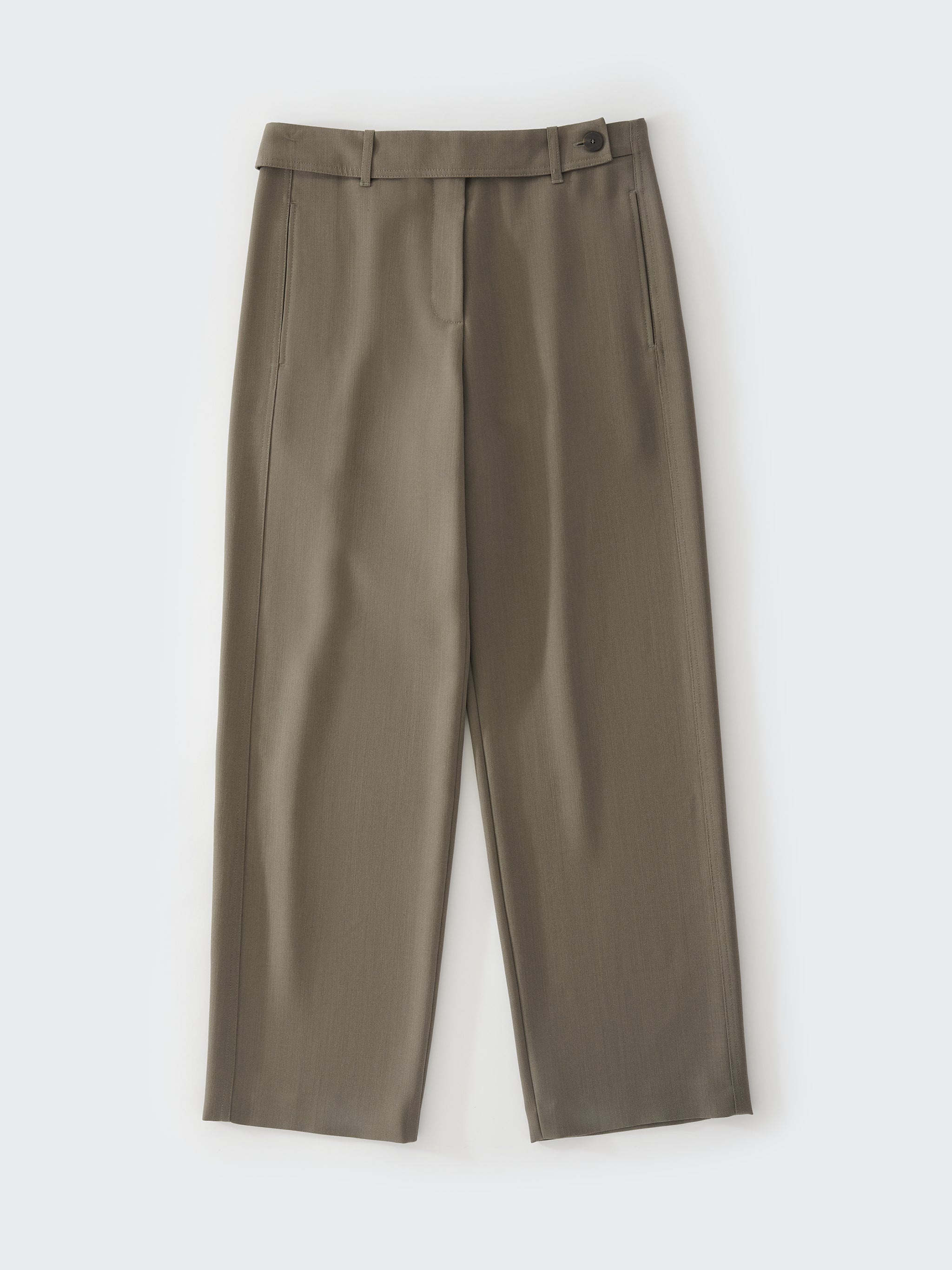 A slim, straight style that sits at the natural waist, Eyasi nods to classic tailoring with its extended waist tab. The sleek, sharp leg shape is created by over-seam panels running the full length of the pants. - Button-fastening waistband tab - Slightly cropped length - Fluid technical wool blend - Slim, straight fit Rebecca is 5’10” / 177.5cm, she wears a size 0 DETAILS & CARE 55% Polyester 45% Virgin Wool Made in Portugal Dry Clean Only