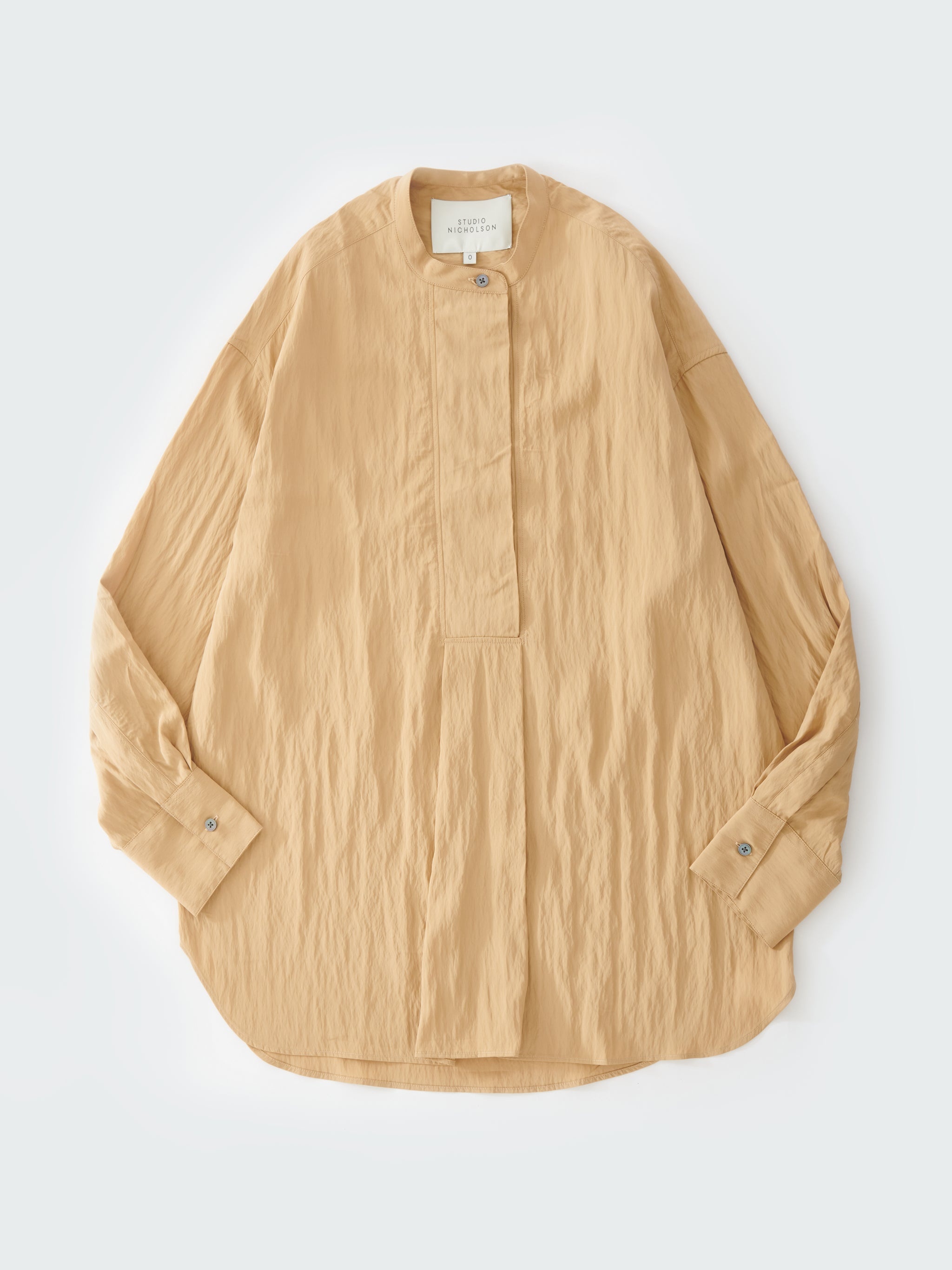 Frink is a popover style shirt with a half placket and a box pleated front for added volume. Its oversized fit makes it an easy piece to throw on, whether layered or worn as a standalone item. - Grandad collar - Wide concealed placket - Oversized fit - Bouncy tech viscose fabric - Wear it with the matching Toba Pant DETAILS & CARE 89% Viscose, 11% Polyamide Made in Portugal Hand Wash / Dry Clean