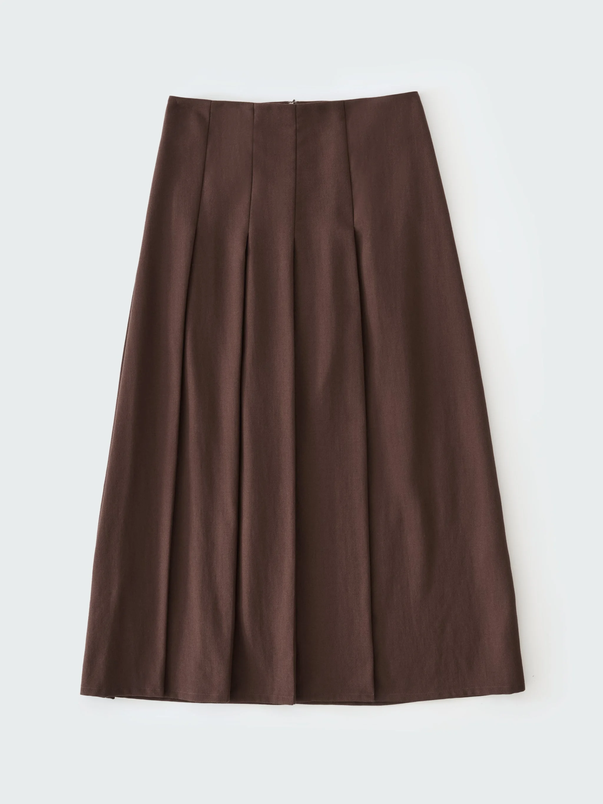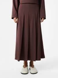 This Fuse skirt is crafted from a lightweight woven wool that nods to traditional tailoring fabrications. Cut to sit mid-waist, it has a pleated front with an off-centre slit which lends an effortless drape to the asymmetric silhouette. DETAILS - Pleated front - Off-centre front slit - Concealed back zip fastening - Wear it with the matching Bute Top Miko is 5'9" / 177cms and wears a size UK8 CARE 98% Virgin Wool 2% Polyamide Do NOT Wash | Dry Clean Only Made in Portugal