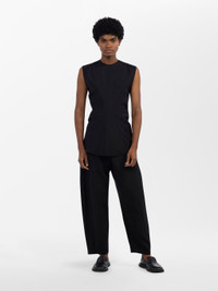 Constructed from two curved panels of our Fluid Wool-Viscose fabric, the Garda top gathers in at the waist before kicking out dramatically at the hem. It’s a three-dimensional piece, designed to be seen in motion. - Centre front seam - Rear button fastening - Gathered, three-dimensional shape - Highly fluid Italian wool-viscose Briana is 5’11” / 180.5cm, she wears a size 0 DETAILS & CARE 24% Virgin Wool, 76% Viscose Made in Portugal Dry Clean Only