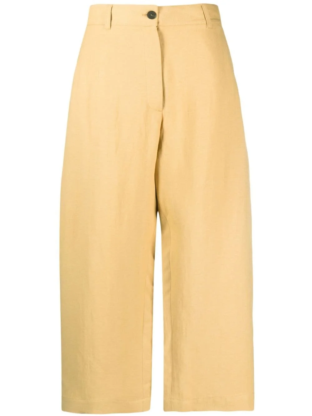 high-waisted wide-leg trousers Tying in with minimalist trends, this pair of trousers from Studio Nicholson are presented in a monochromatic hue, whilst their sleek, wide-leg silhouette adds to this contemporary feel. Highlights - Yellow - Linen - High waist - Front button and zip fastening - Wide leg Imported Composition Linen/Flax 64%, Viscose 36% SIZE & FIT Model measurements Height 5 ft 10 in(1.78 m) Bust/Chest 30.7 in(78 cm) Hips 34.64 in(88 cm) Waist 23.22 in(59 cm) FittingInformation Designed with a wide-leg cut, these trousers allow for a close fit at the waist and offer a loose and roomy fit over the leg Made from a midweight non-stretch fabric This piece fits true to size – take your usual size Washing instructions Dry Clean Only