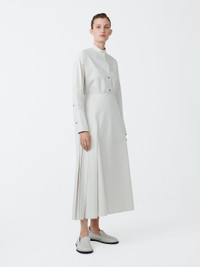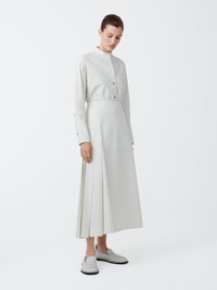 The Lawson has a feminine silhouette, with long lines and plenty of movement. It has an asymmetrical drape created by off-centre pleating on one side. It is made from our signature mid-weight cotton; soft, with a matte, powdery finish. DETAILS - High waist - Mid-weight cotton - Matte powdered finish - Wear it with the matching Beek Shirt Louise is 5'11"/ 177.8 cms and wears a UK8 CARE 100% Cotton Wash at 30°C | Delicate Wash Made in Portugal