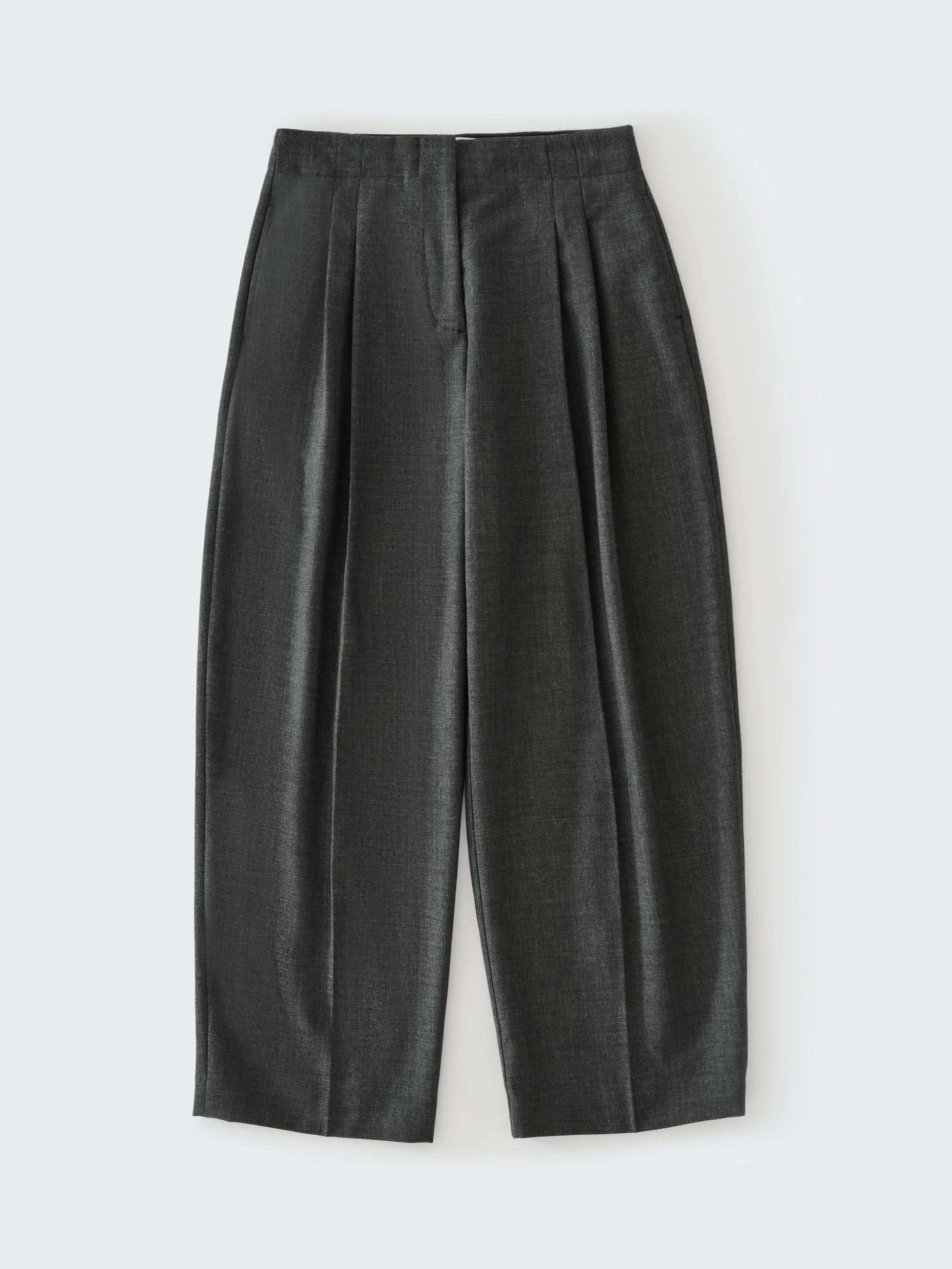 Studio Nicholson’s contemporary tailoring is evident in the Lira pant. Drawing on the slouchy tailoring prevalent in the 90s, Lira is shaped with a lower rise waist and a shorter length that highlights the curve in the leg. They’re cut from our heritage wool – a British-milled worsted wool selected for its breathability and a dry, crisp hand feel – and fitted with double reverse pleats. DETAILS - Hook and bar and zip fly closure - Double reverse pleats - Side seam pockets - Rear welt pockets - Wear it with the matching Pinole ShirtLuana is 5'10" / 178 cms and wears a size UK8 CARE Main Fabric: 100% Wool Lining: 100% Viscose Dry Clean Only Made in Portugal
