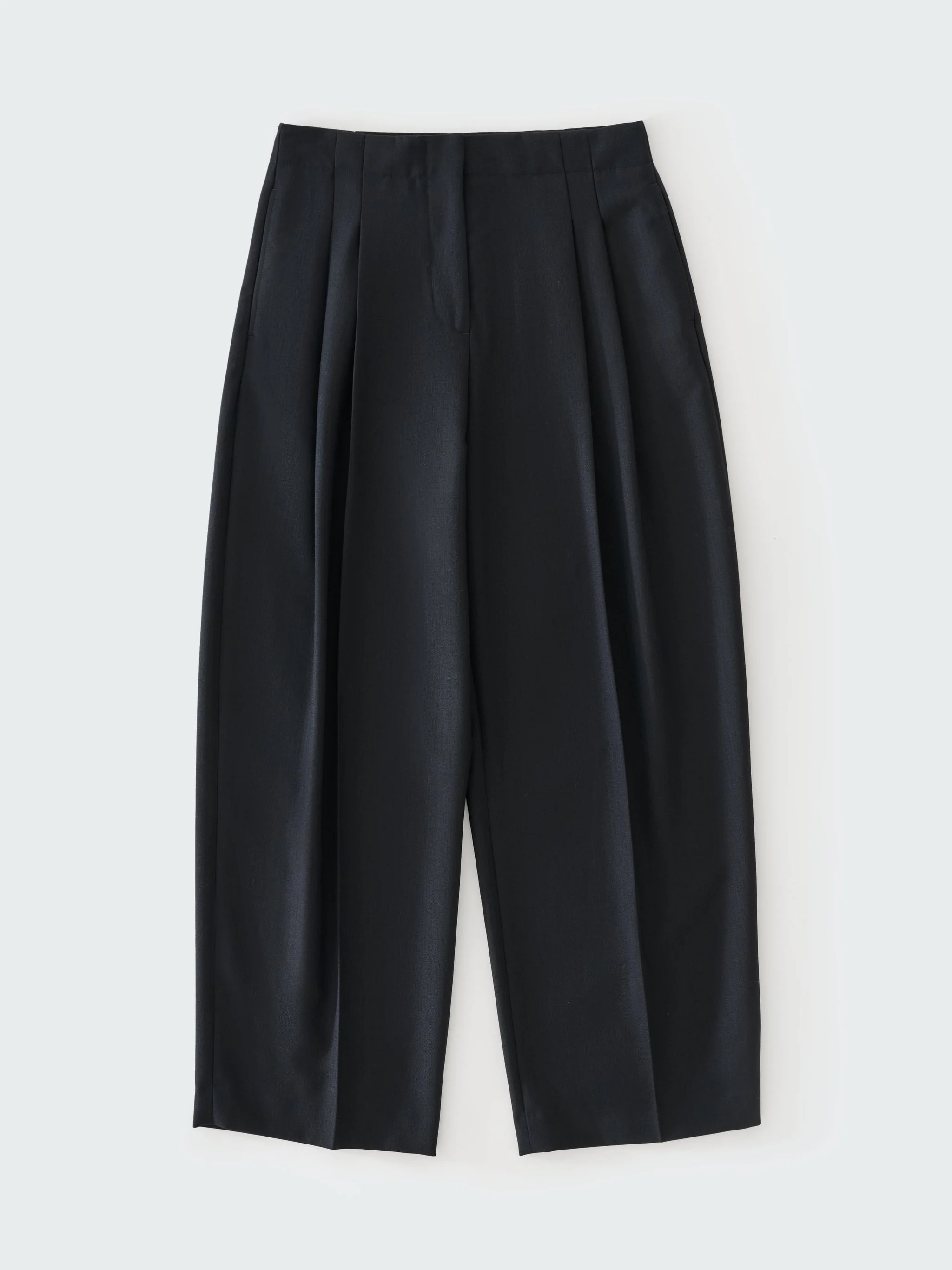 Studio Nicholson’s contemporary tailoring is evident in the Lira pant. Drawing on the slouchy tailoring prevalent in the 90s, Lira is shaped with a lower rise waist and a shorter length that highlights the curve in the leg. They’re cut from our heritage wool – a British-milled worsted wool selected for its breathability and a dry, crisp hand feel – and fitted with double reverse pleats. DETAILS - Hook and bar and zip fly closure - Double reverse pleats - Side seam pockets - Rear welt pockets - Wear it with the matching Pinole ShirtLuana is 5'10" / 178 cms and wears a size UK8 CARE Main Fabric: 100% Wool Lining: 100% Viscose Dry Clean Only Made in Portugal