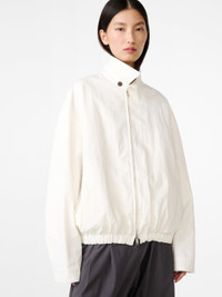 Our focus on fabrications led us to this Japanese cotton and nylon-blend twill that has a tactile surface and a crisp, ‘noisy’ hand feel. We’ve used it for to emphasise the contemporary feel of our Lyons jacket, which features traditional Harrington-inspired details including a buttoned throat latch and flexible shoulder gussets. DETAILS - Classic collar with buttoned throat latch - Two-way zip-fastening front - Shoulder gussets - Front slant pockets - Internal slip pocket - Elasticated hem - Fully lined - Wear it with the matching Howse PantJosefp is 6'2" / 187 cms and wears a size MediumXinyue is 5'11" / 180cms and wears a size Small CARE Main Fabric: 55% Cotton 45% Nylon Lining: 100% Cotton Do NOT Wash | Professionally Wet Clean Only