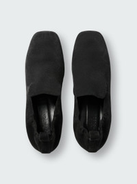 Moon marries baroque design elements with a highly modern sensibility. A narrow last, stacked heel and square toe create sharply defined shape, which is softened by buttery suede leather and an elasticated heel. DETAILS - Elongated square tongue - Bevelled sole - Leather lined - Close-fitting shape - Heel height - 4.5cm CARE 100% Leather Remove Dirt Or Marks With A Clean Cloth Use A Neutral Polish Made in Portugal