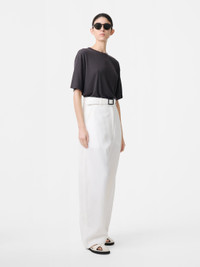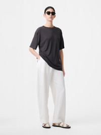 The Myers provide a longer version of our signature Chalco Pant. With a loose fit and a curved leg, they have a felled hem for easy tailoring. They are made in a viscose-linen blend with a bouncy hand feel and slub texture with a natural crinkle. Designed to be worn at the mid-waist or higher, they feature Italian pockets and a flap pocket at the back. DETAILS - Hook and bar closure at the waist - Felled hem - Italian pockets - Back flap pocketsRebecca is 5’10” / 177.5 cms and wears a size UK8 CARE 73% Viscose 27% Linen Do NOT Wash | Dry Clean Made in Portugal