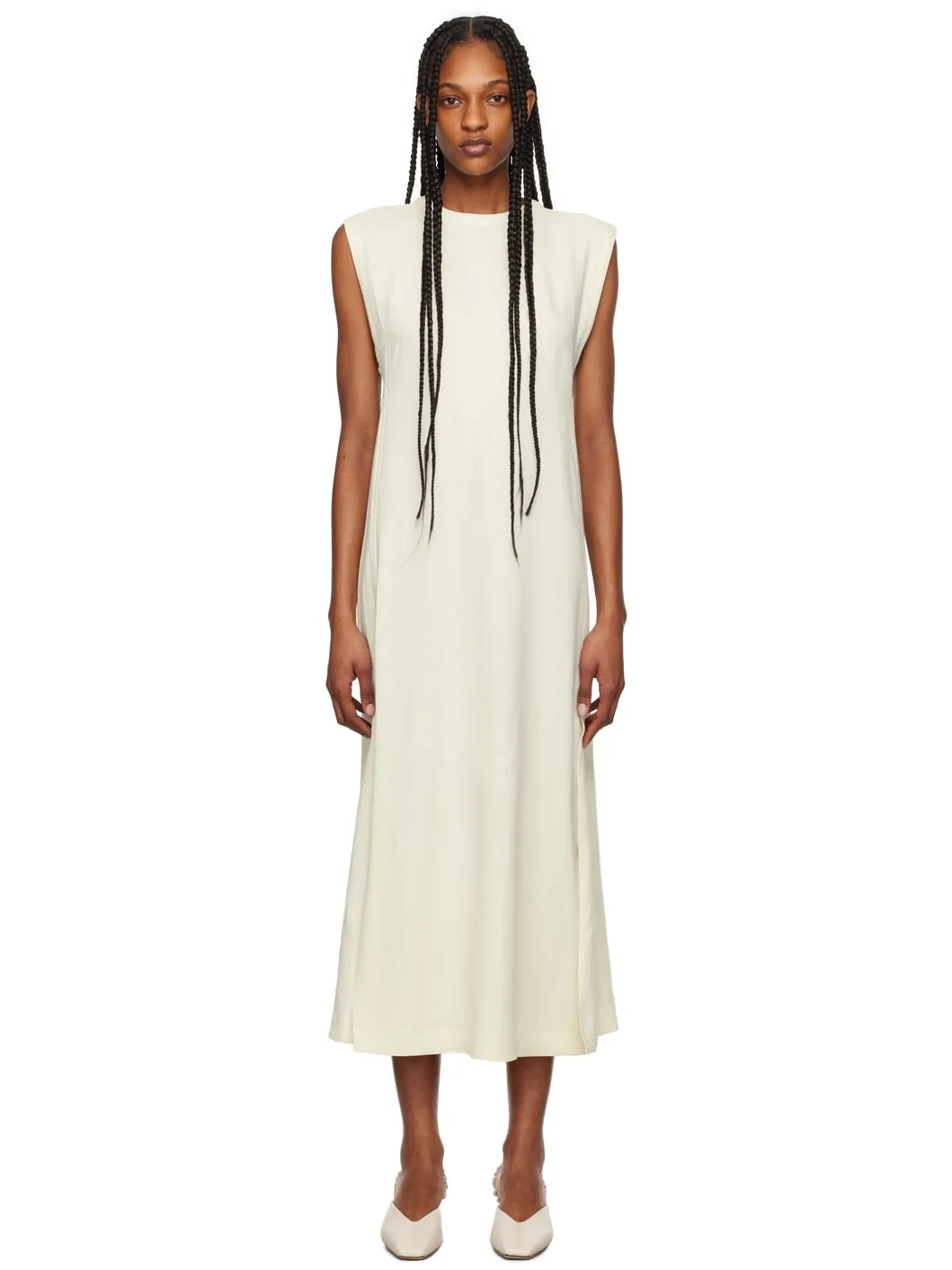 Viscose- and linen-blend twill dress. · Round neck · Darts at bust · Vents at hem · Button fastening at back collar · Cutout at back · Concealed zip closure at back Supplier color: Parchment