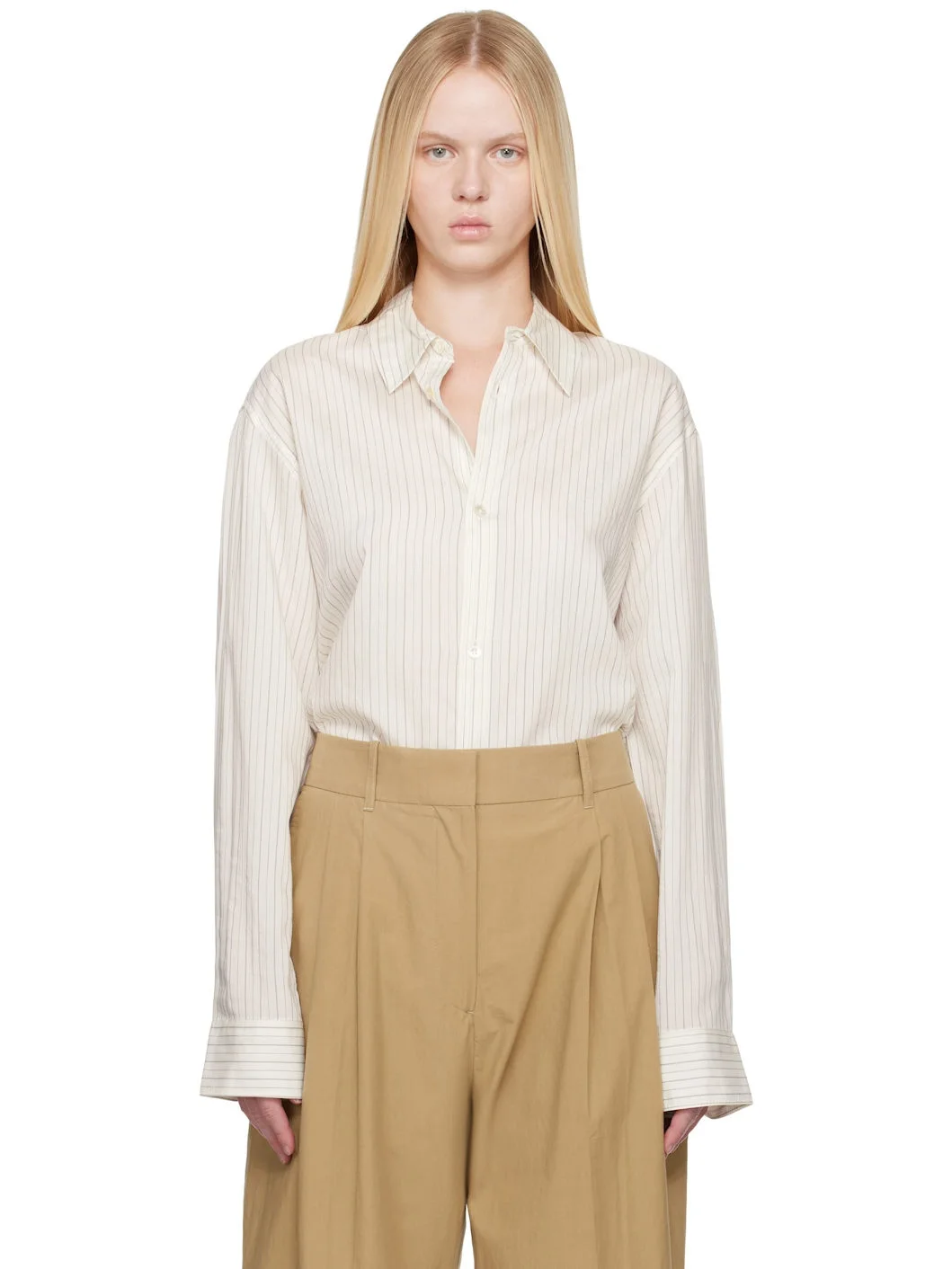 Boxy-fit silk- and cotton-blend voile shirt. Pinstripes throughout. · Spread collar · Button closure · Shirttail hem · Buttoned barrel cuffs · Twin pleats at back yoke · Mother-of-pearl hardware Supplier color: Ecru/Black 96% silk, 4% cotton. Made in Portugal 251608F109006