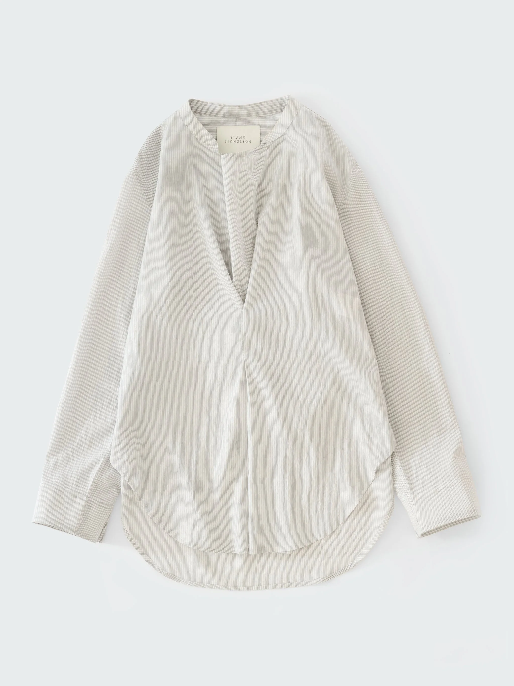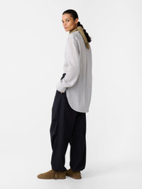 An example of Studio Nicholson’s modern take on classic shirtmaking, Pampa is crafted with an inverted pleat that creates a pleasing drape that’s accentuated by the fabric choice: an Italian-milled fluid lyocell and nylon blend that has a lightly peached finish and a soft, comfortable handle. DETAILS - Inverted pleat - Buttoned side vents - Buttoned cuffs - Curved hemNataly is 5'10" / 177 cms and wears a size UK8 CARE 81% Lyocell 19% Polyamide Hand Wash | Delicate Dry Clean Made in Portugal
