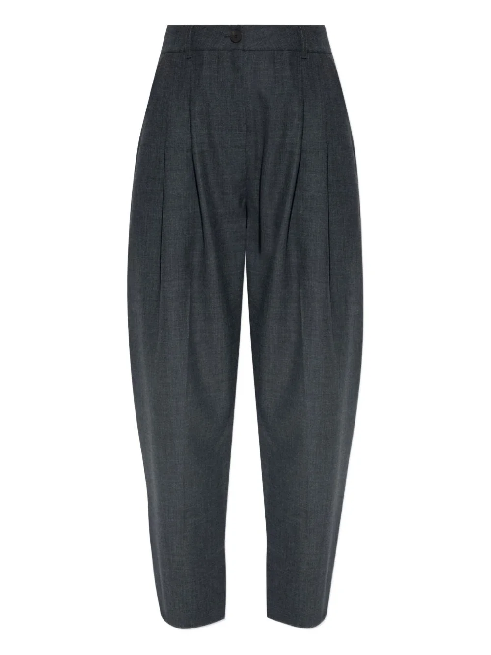 pleated tapered wool trousers Highlights - Slate grey - Pleated design - Button fastening - Wool Imported Composition Wool 100% Washing instructions Read Manufacturer Guidelines