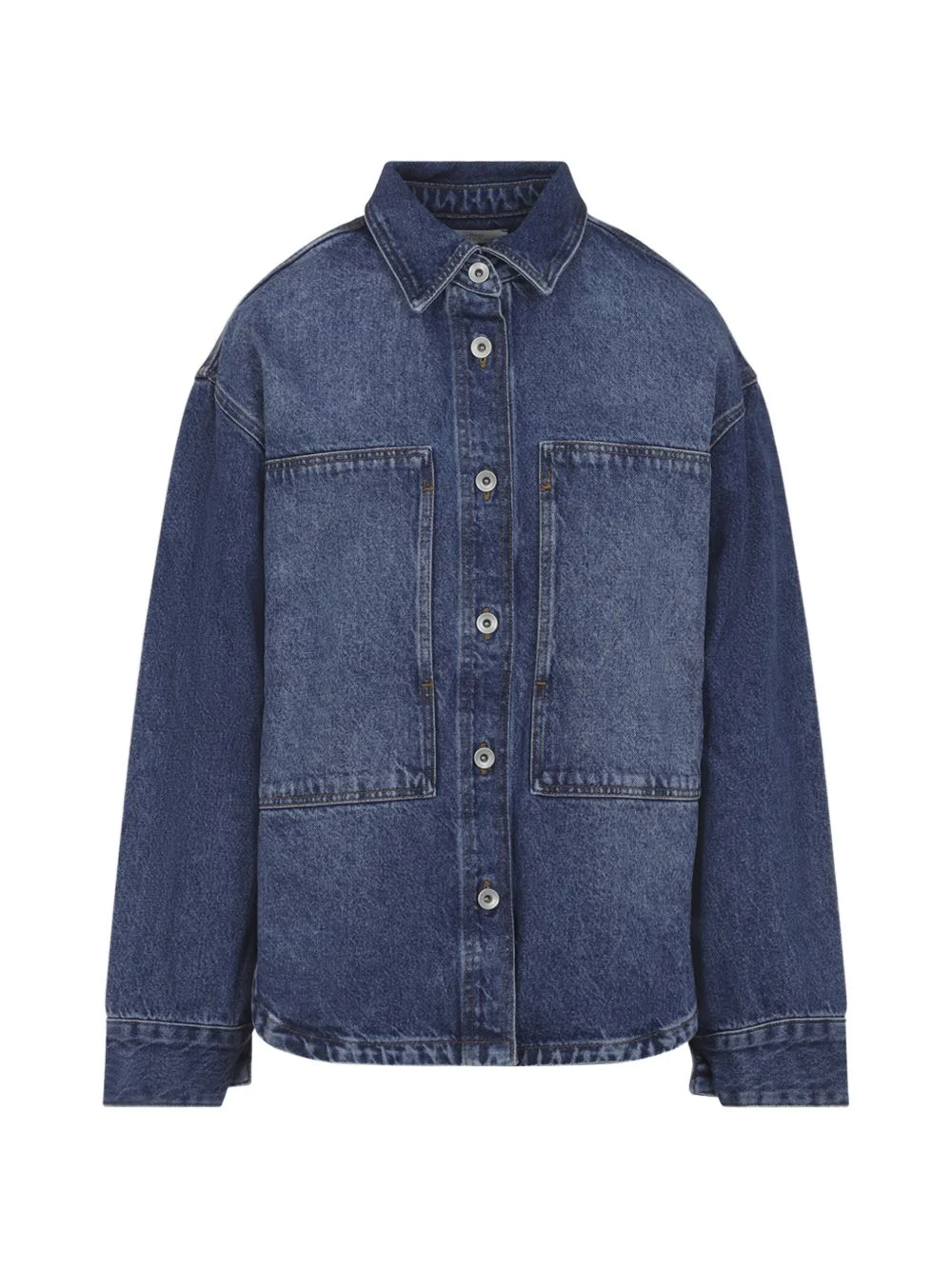 pocketed shirt denim jacket Highlights - Blue - Chest pockets - Button fastening - Long sleeves - Point collar - Buttoned cuffs Imported Composition Cotton 100% Washing instructions Read Manufacturer Guidelines