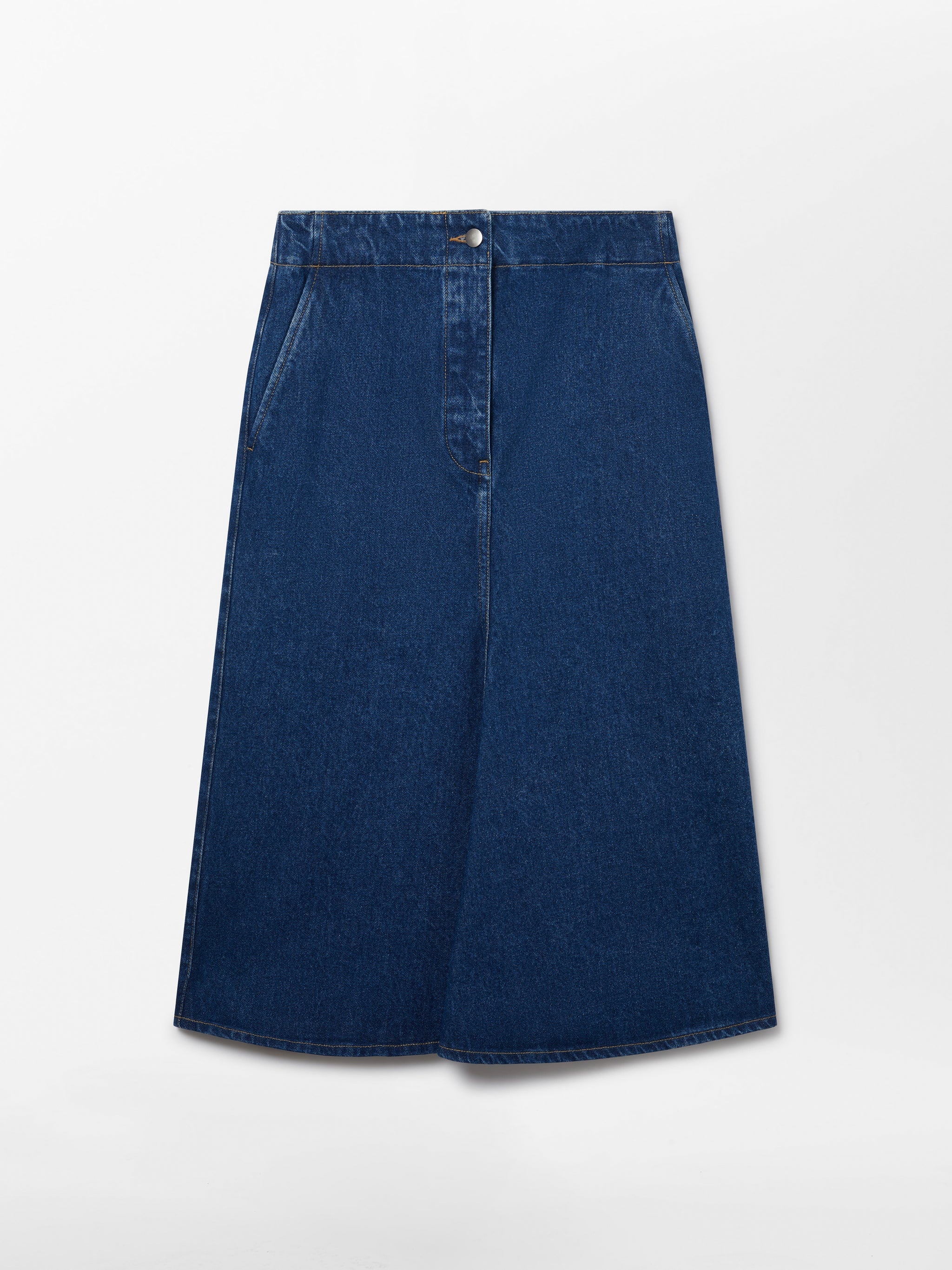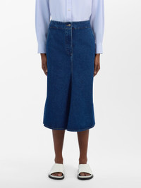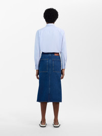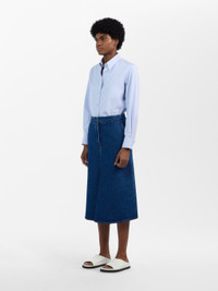 Creating shape and movement through cut, the Preto skirt sits at the natural waist, closely following the line of the hips before kicking out at the hem. Additional fabric in the skirt’s front allows for this three-dimensional, dynamic nature. - Integrated waistband - Square patch pockets - Substantial denim twill Briana is 5’11” / 180.5cm, she wears a size 0 DETAILS & CARE 100% Cotton Made in England Wash at 30°C