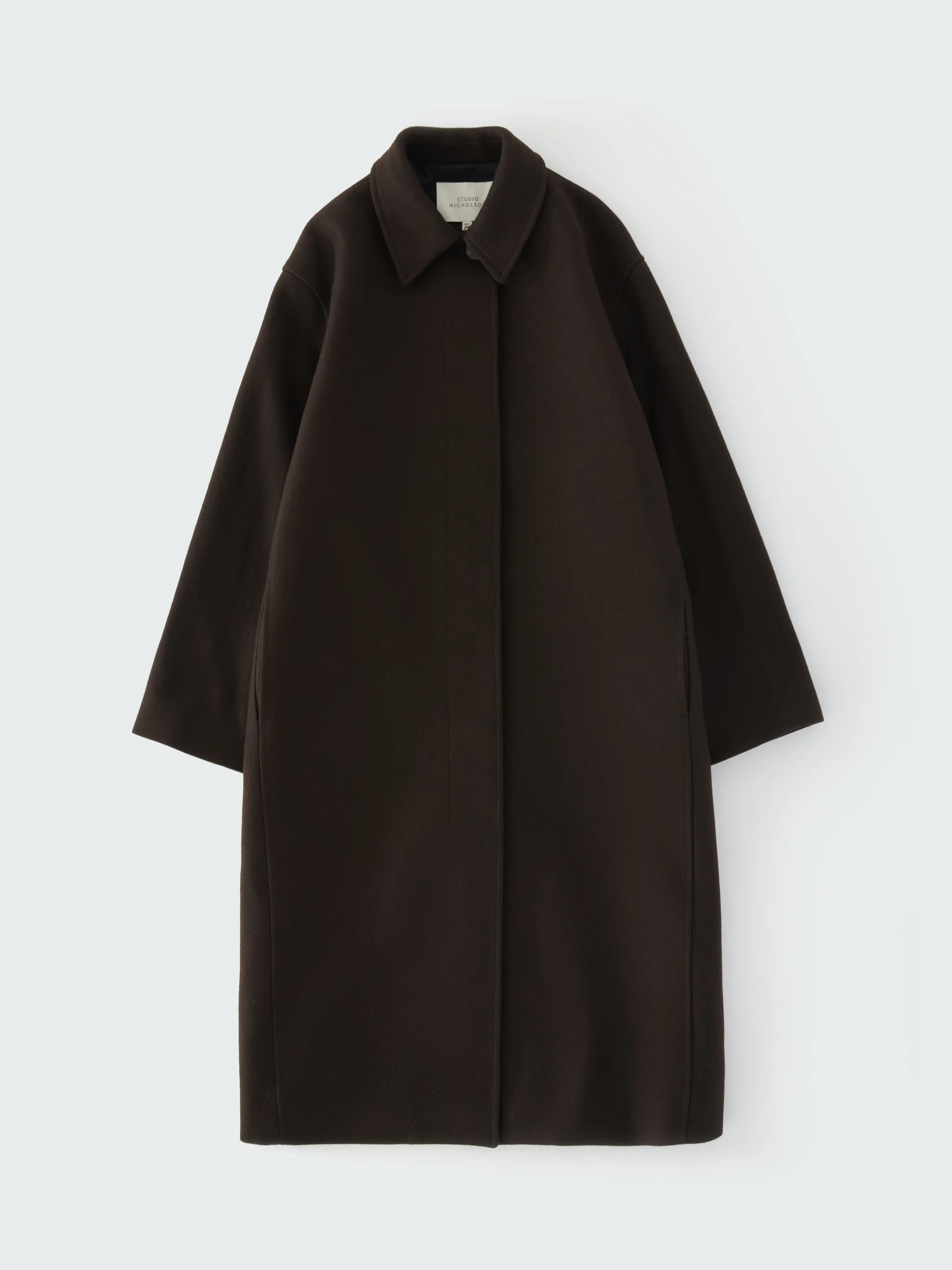 An A-line, swing-style coat, Ria takes its inspiration from traditional tailored overcoats. It is designed to drape and move fluidly, something that is aided by the use of dense Melton wool blend. DETAILS - Long back vent - Covered placket - Dense, rich Melton wool blend - Roomy, fluid cut Rebecca is 5’10” / 177.5cm, she wears a size UK8Runs large, for a less oversized fit take a size down from your usual size CARE Main Fabric: 80% Wool 20% Polyamide Lining: 51% Viscose 49% Cotton Dry Clean Only Made in Portugal