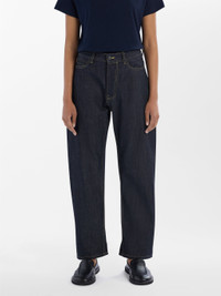 High waisted straight leg pant made from a 14oz denim fabric. Details: - Flat front - Two hand pockets and two rear patch pockets - Concealed zip fly with metal button closure - Cropped length - Belt loops Emmanuelle is 5’10” / 178cm, she wears a size 0 DETAILS & CARE 100% Cotton Dry Clean Only