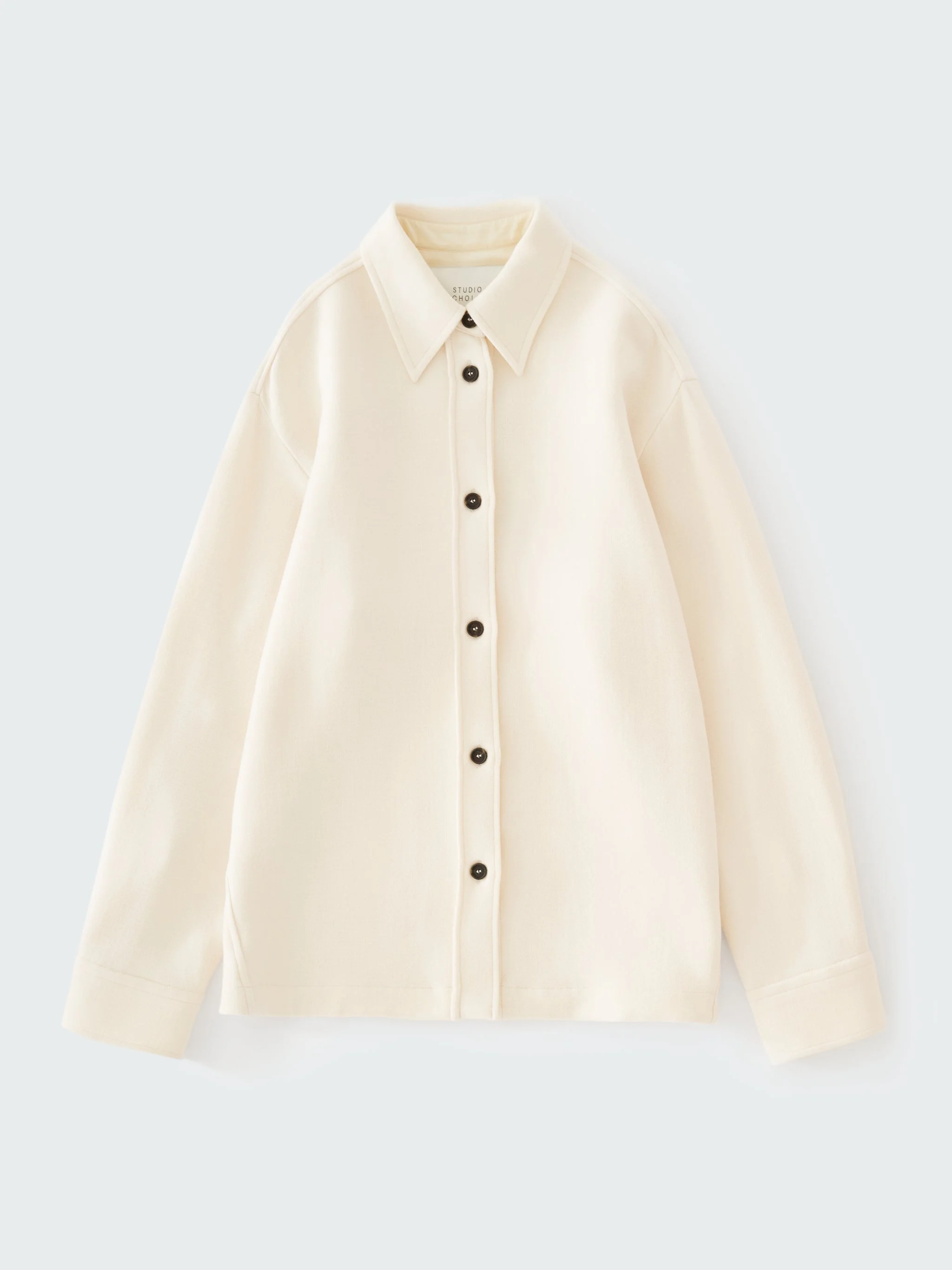 Studio Nicholson’s contemporary approach to modern shirt-making is evident in Santini. Taking its cues from the classic overshirt silhouette, it’s constructed with a smart point collar and a straight hem. Santini is made from our Italian-milled double wool sable fabric - a double-woven wool selected for its spongy texture and comfortable stretch, which sits easy on the frame. DETAILS - Point collar - Button closure - Straight hem - Single-button cuff - Wear it with the matching Aru Skirt or Thalo PantLuana is 5'10" / 178 cms and wears a size UK8 CARE 96% Virgin Wool 4% Lyocell Dry Clean Only Made in Portugal